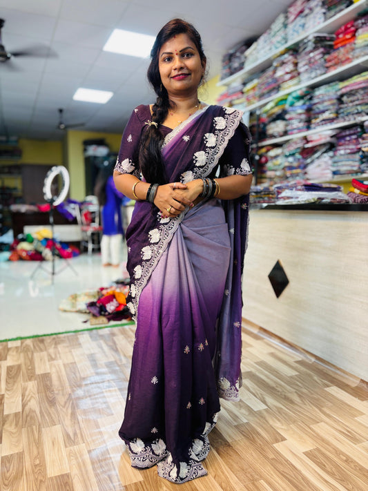 2D Georgette Embroidery Cutwork Saree