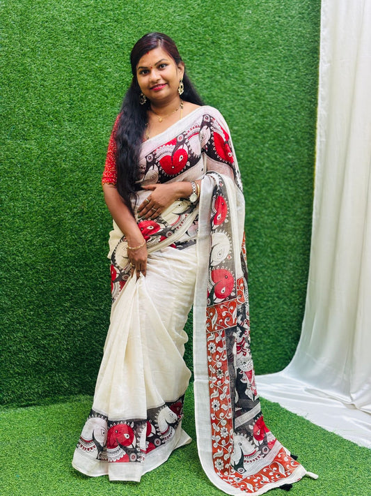 Rust Orange Mangalgiri Pichwai Pattu Sarees