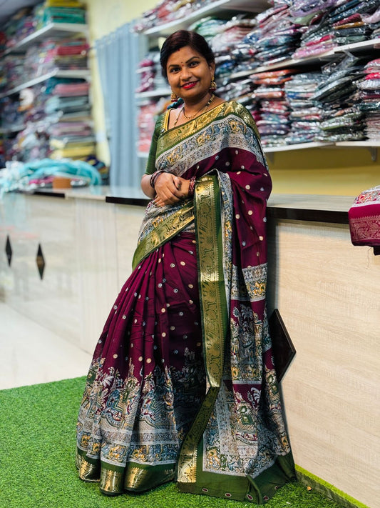 Premium Maheswari silk sarees with Kanchi peacock borders