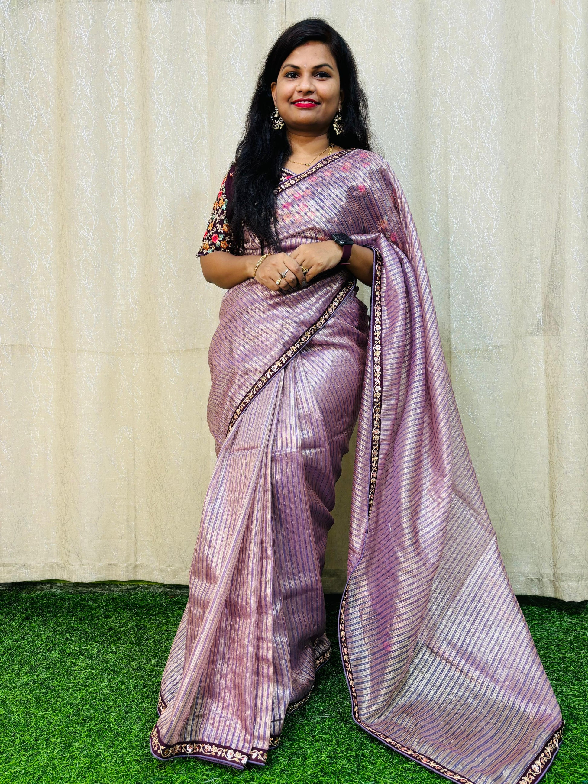 ಲೇಸ್ ಬಾರ್ಡರ್ಗಳೊಂದಿಗೆ ಮೂಂಗಾ ಟಿಶ್ಯೂ ಸೀರೆಗಳು