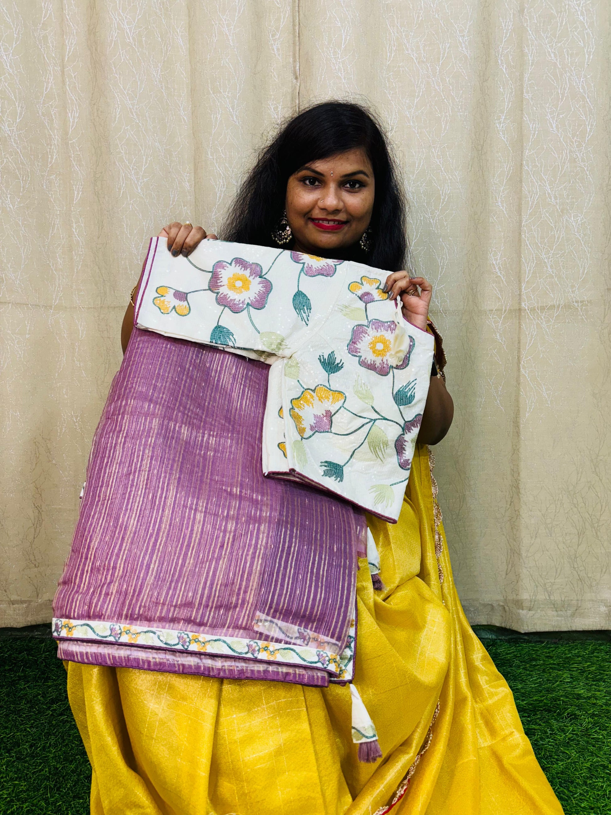 ಲೇಸ್ ಬಾರ್ಡರ್ಗಳೊಂದಿಗೆ ಮೂಂಗಾ ಟಿಶ್ಯೂ ಸೀರೆಗಳು