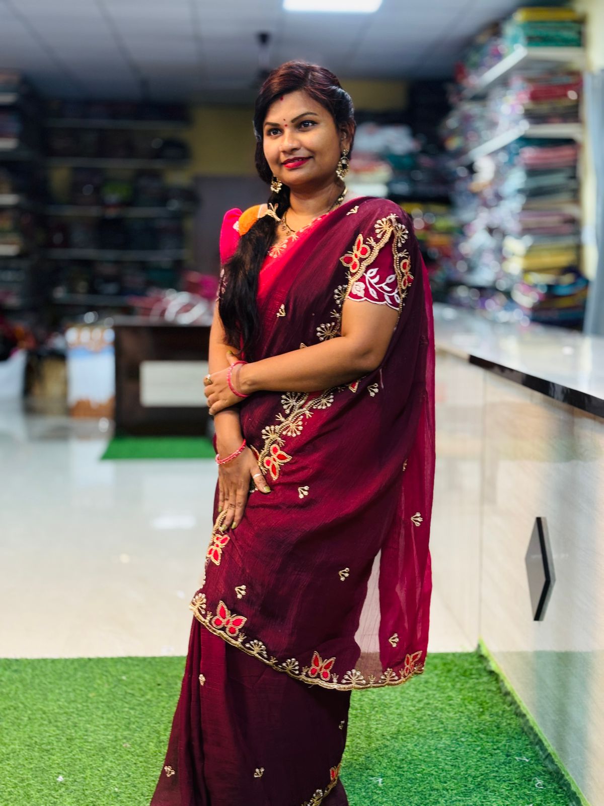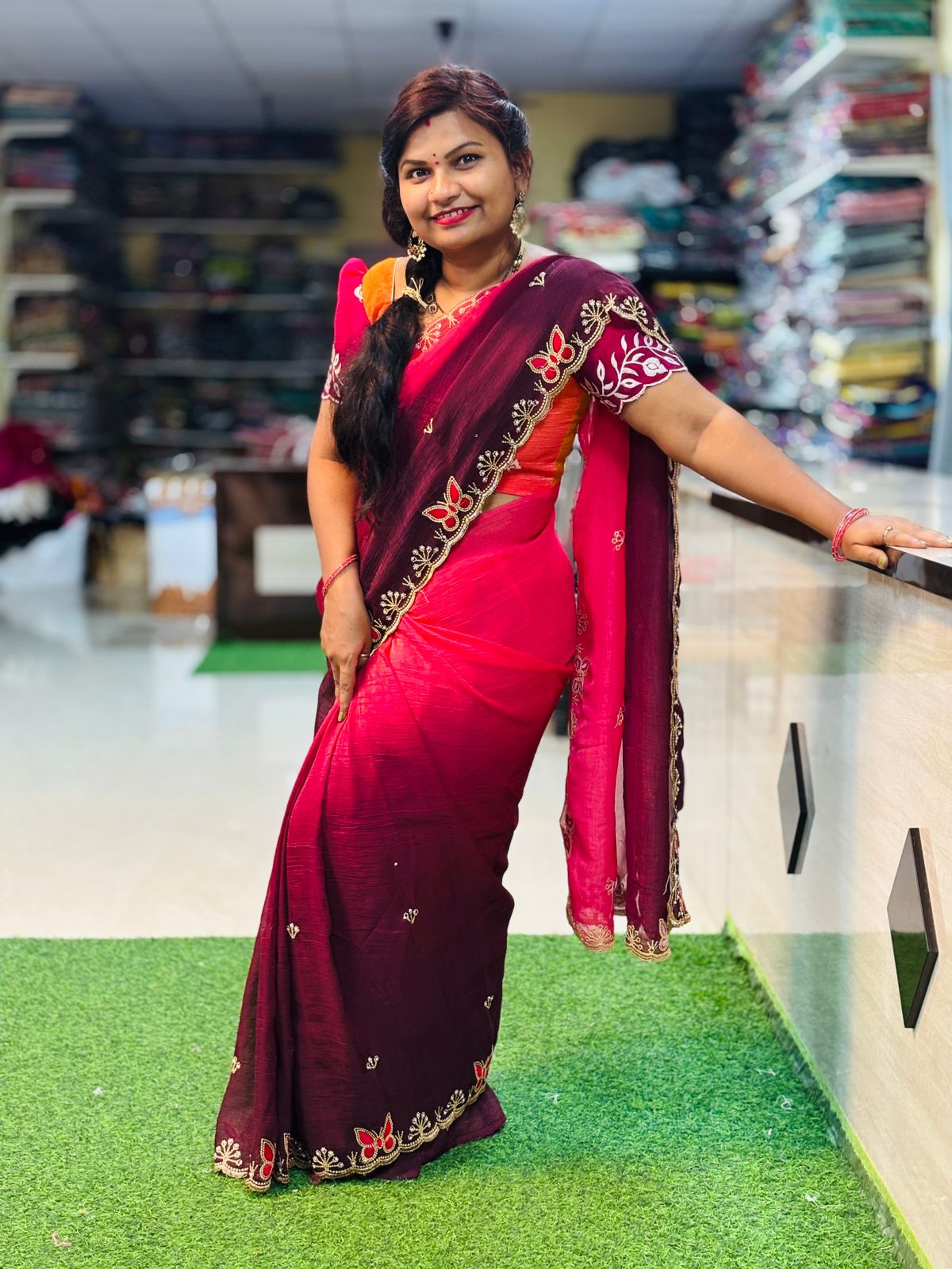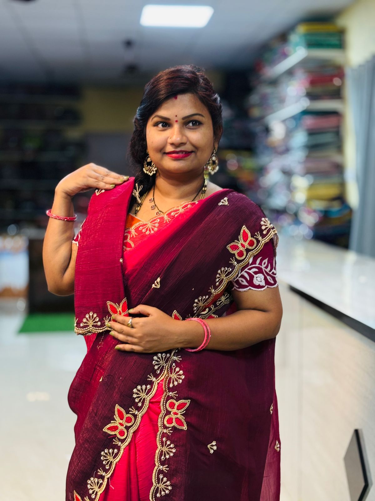 ✨ 3D Space Glossy Saree with Embroidery Cutwork ✨