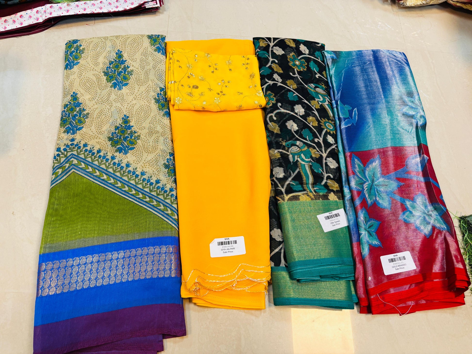 Elevate your Navarathri celebrations with our exclusive offer: 999-4 sarees for just $999! These sarees are perfect for the festive season, made with high-quality fabrics for comfortable wear. Don't miss out on this limited time sale to add some traditional charm to your wardrobe.