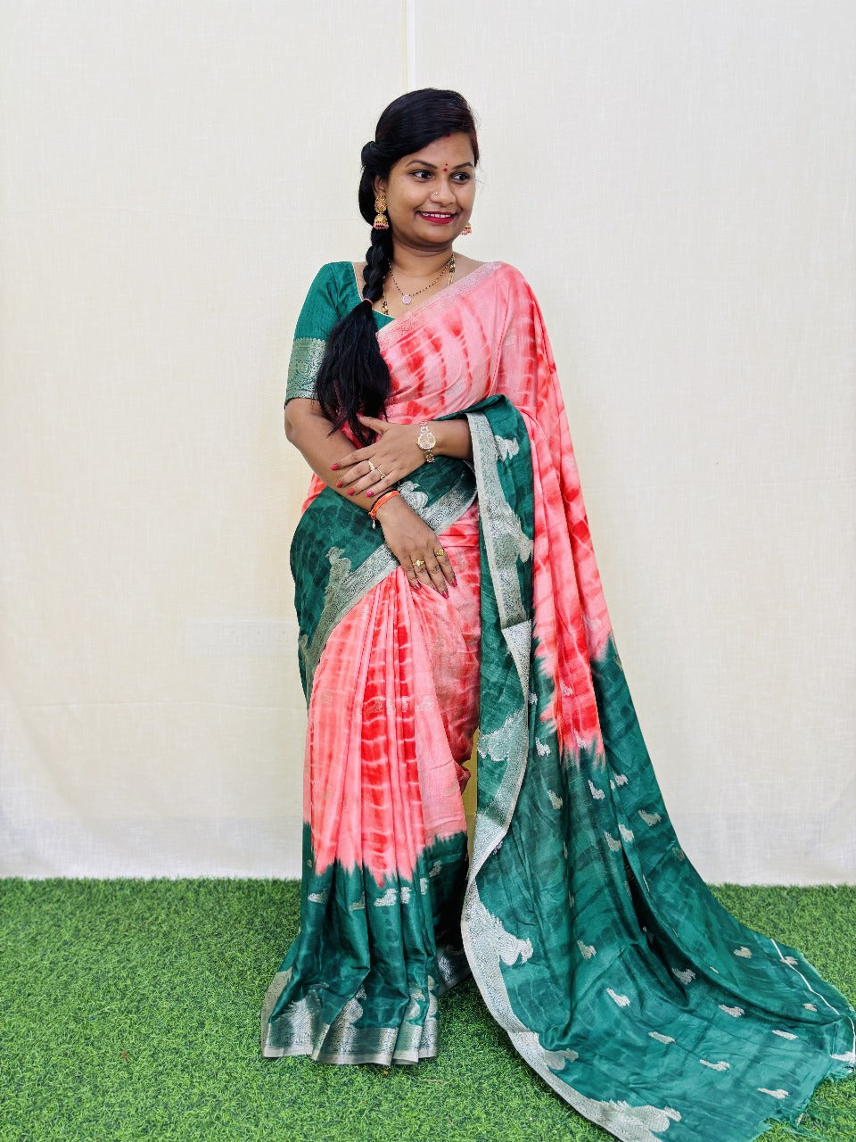 Introducing our Banarasi Mashroom Silk Sarees, crafted with precision and care on Sibbori Weavings. Experience the elegance and luxury of Banarasi Silk combined with the softness of Mashroom Silk. Perfect for special occasions, these sarees exude sophistication and style. Elevate your wardrobe with our exquisite sarees.