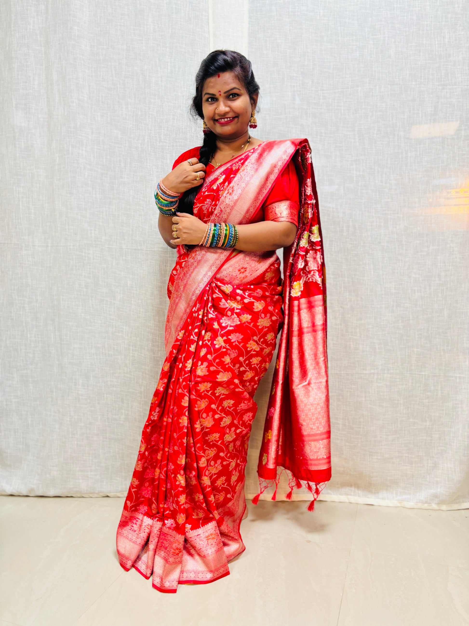 Discover the exquisite craftsmanship of Banarasi pithani Meenakari Weavings. Handwoven with precision and intricate designs, this traditional attire is a symbol of beauty and elegance. Indulge in the luxurious feel of pure Banarasi silk and showcase the rich heritage of India. Available now for only 1399/-!