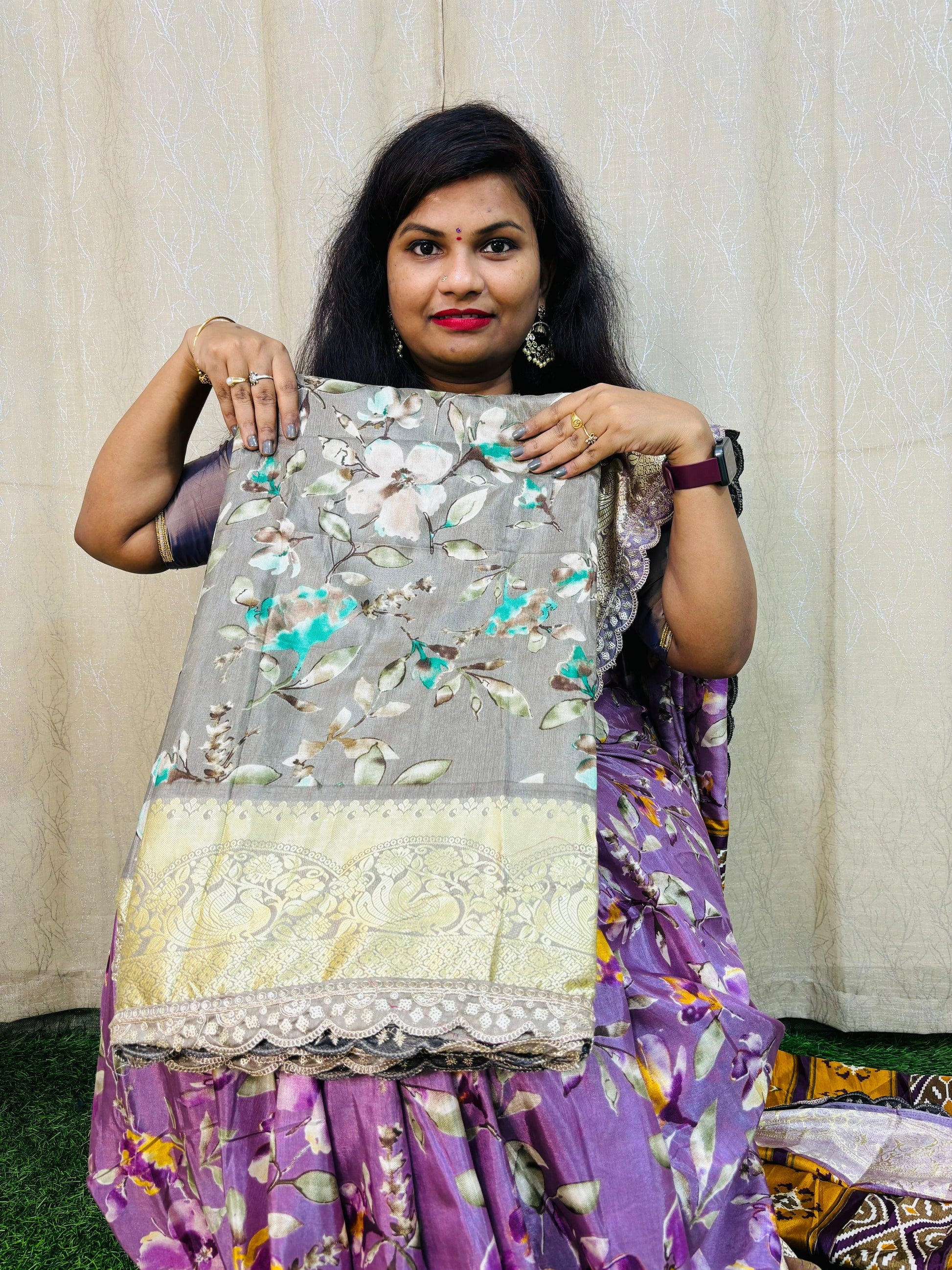 Premium Dola crepe upgrade your wardrobe with our expertly crafted Dola Crepe blouse, featuring a delicate scallop border and elegant peacock zari detailing. Made of premium Dola crepe, and finished with a stunning contrast ikkath pallu, this blouse will elevate any outfit. Stand out with style, confidence, and quality.