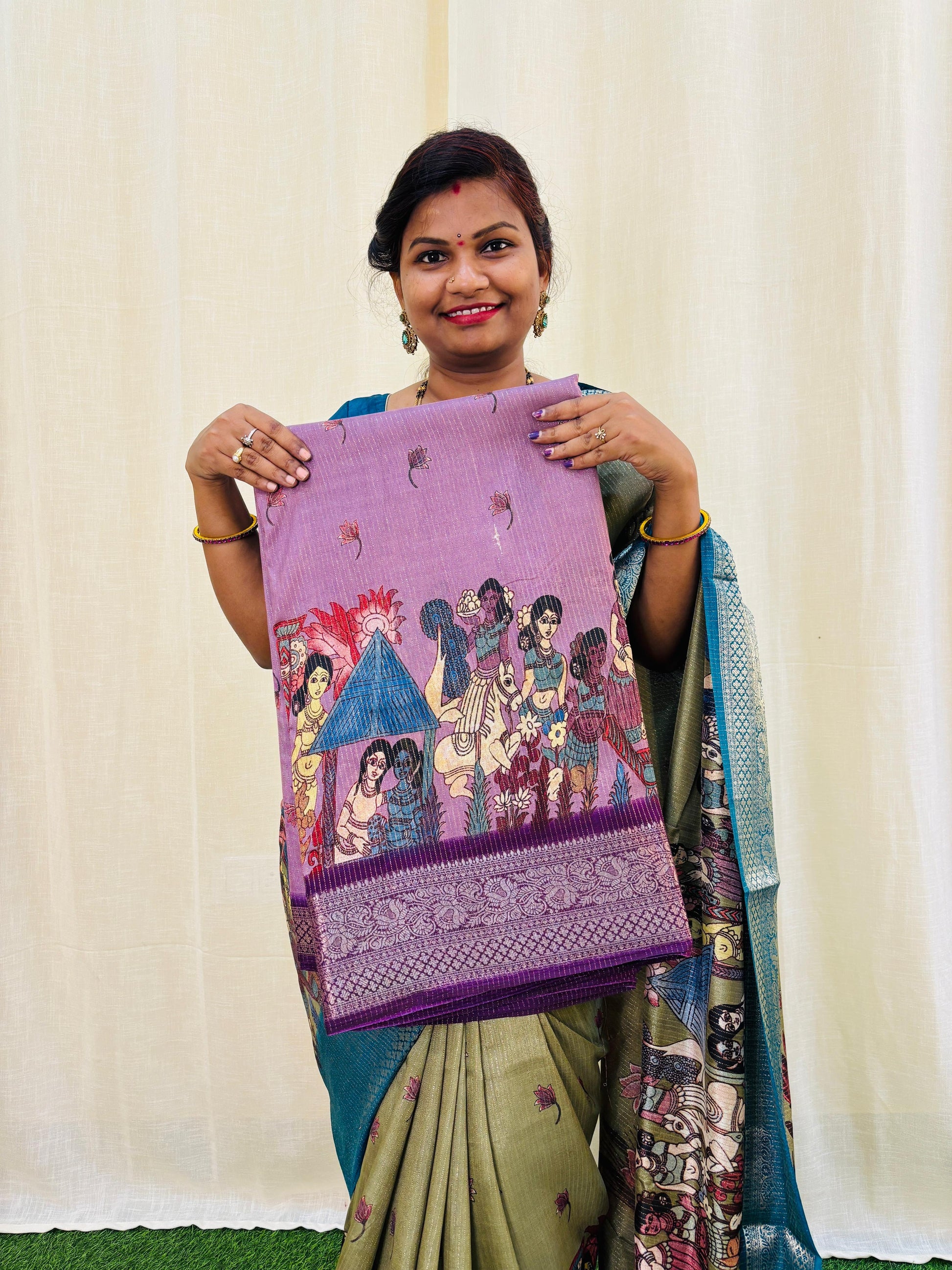 Expertly crafted from luxurious dola crepe silk, this stunning piece showcases traditional Madhubani prints. Glide through the day in style while enjoying the elegance and comfort of this beautiful fabric. The perfect addition to your wardrobe, this one-of-a-kind piece will surely make a statement.