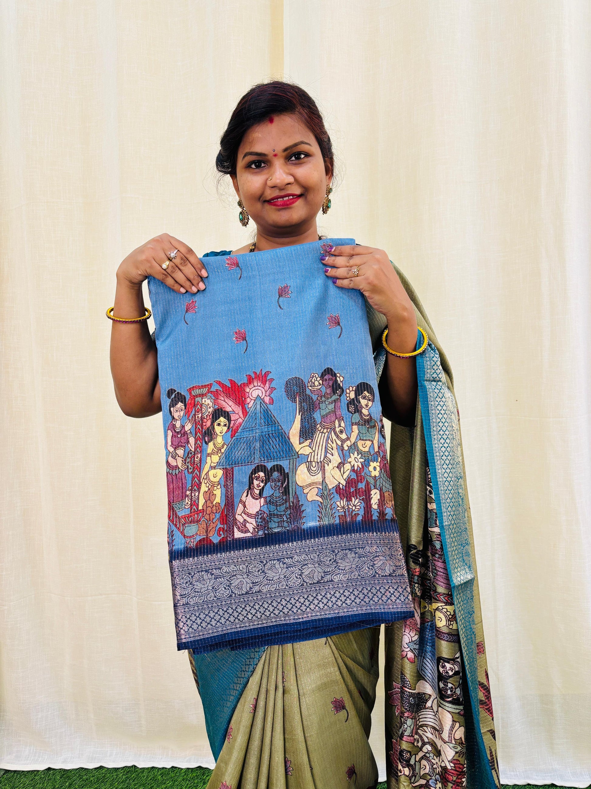 Expertly crafted from luxurious dola crepe silk, this stunning piece showcases traditional Madhubani prints. Glide through the day in style while enjoying the elegance and comfort of this beautiful fabric. The perfect addition to your wardrobe, this one-of-a-kind piece will surely make a statement.