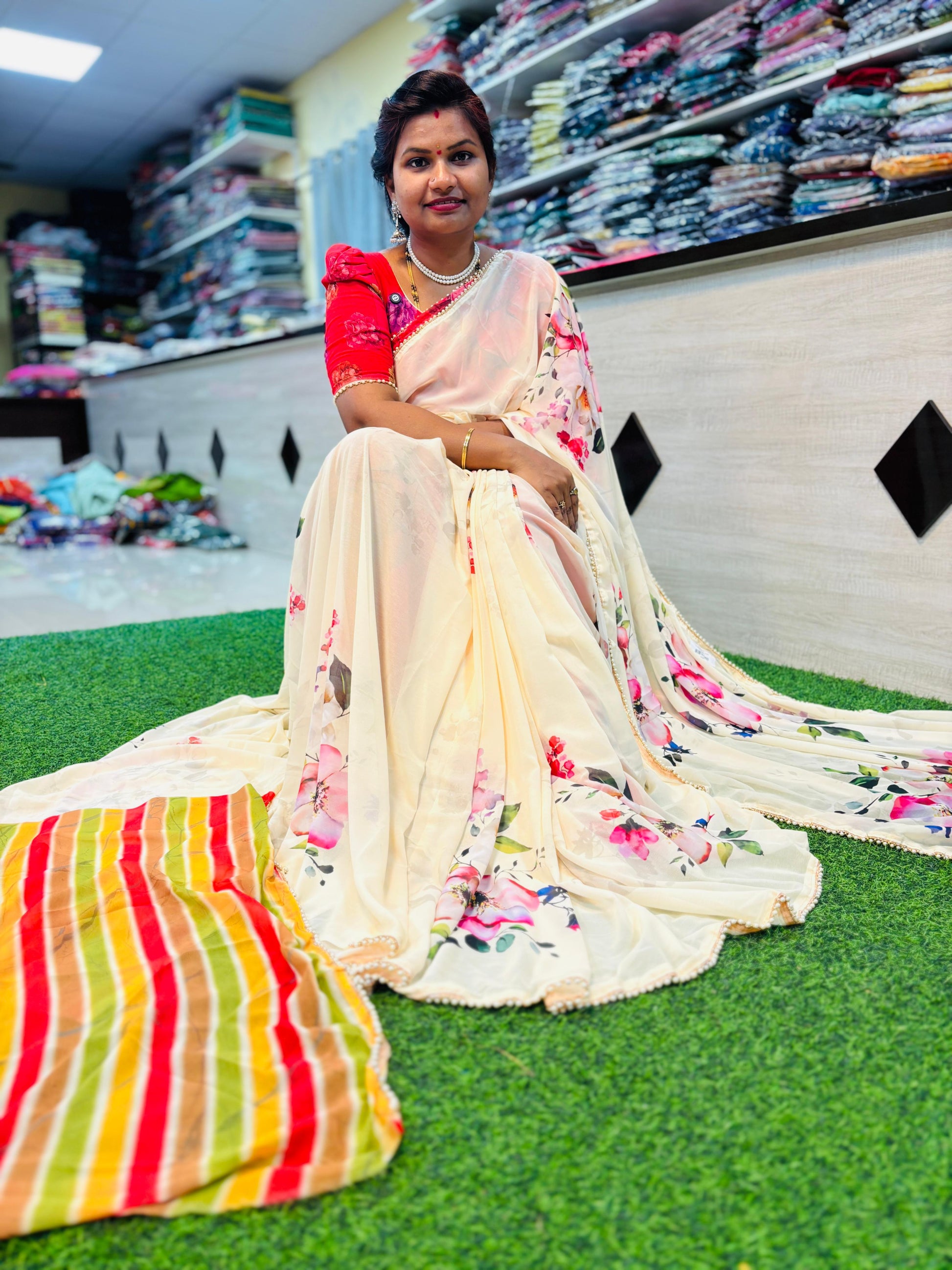 Expertly handcrafted with delicate georgette fabric, these floral pearl borders will add a touch of elegance to any outfit. Made with high-quality materials, these borders are perfect for embellishing sarees, dresses, and more. Enjoy the convenience of free shipping with the purchase of this beautiful accessory.