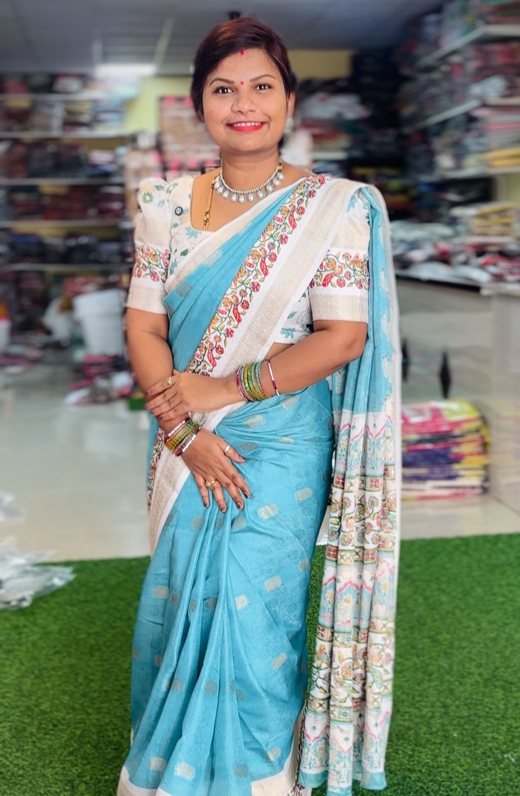 Contrast Kalamkari blouse