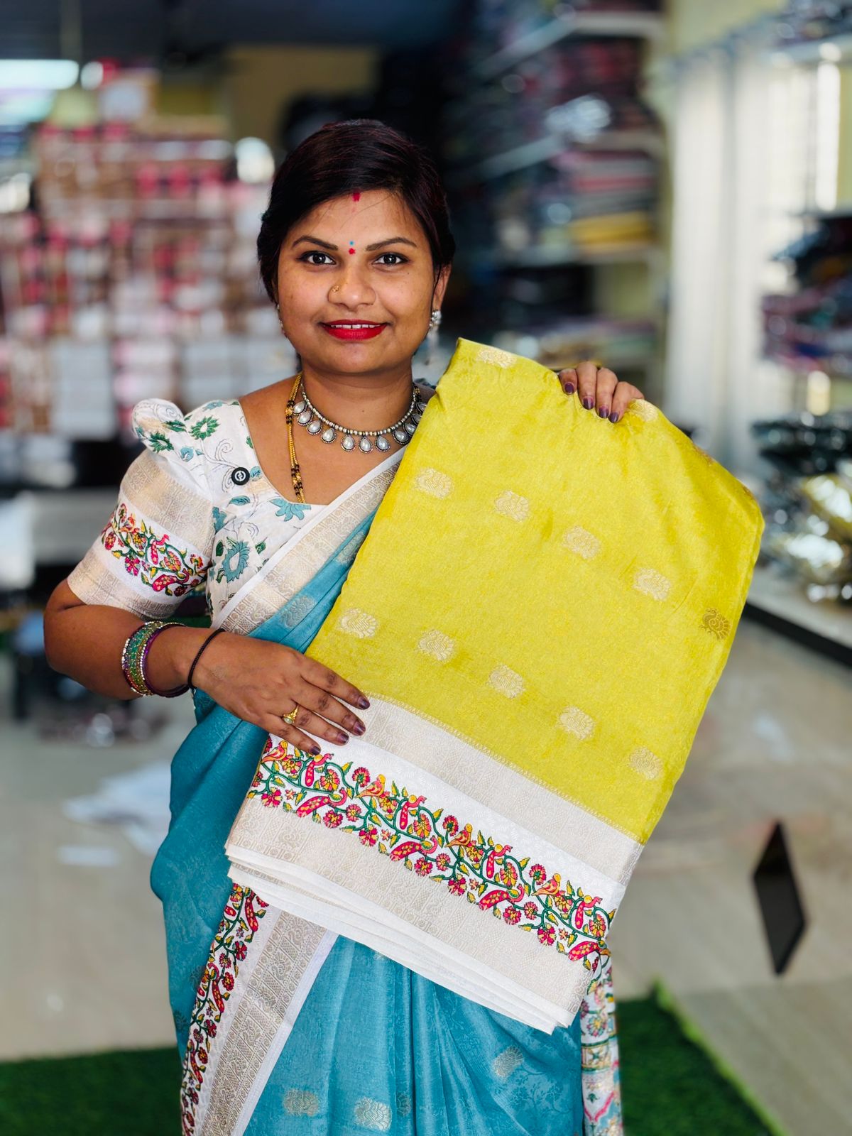 Contrast Kalamkari blouse