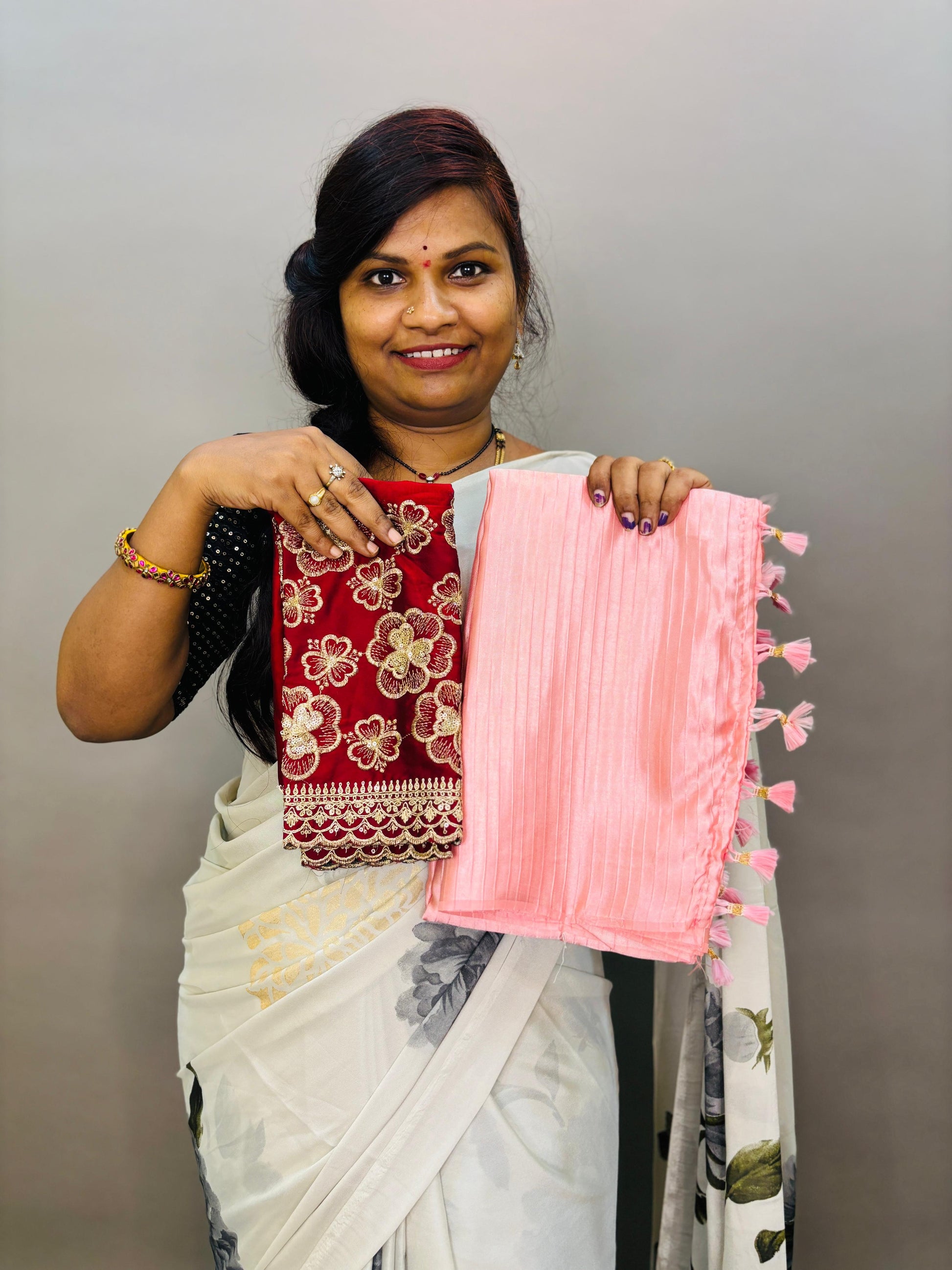 Discover the luxurious feel of Japan Satin Silk, a premium fabric known for its softness and shine. Paired with a designer blouse, this material offers both elegance and comfort, making it perfect for any occasion. Experience the best of Japanese quality with our Japan Satin Silk.