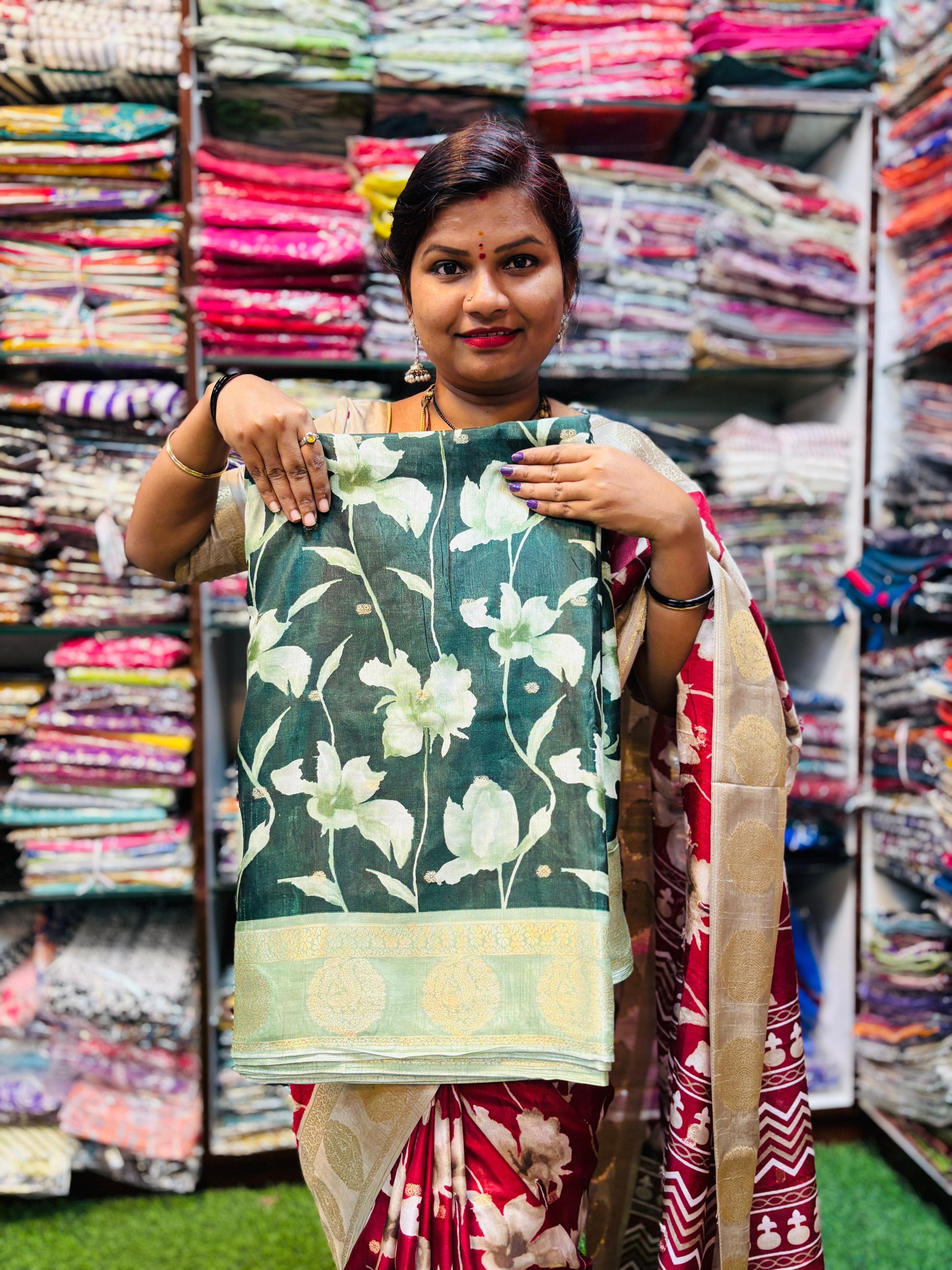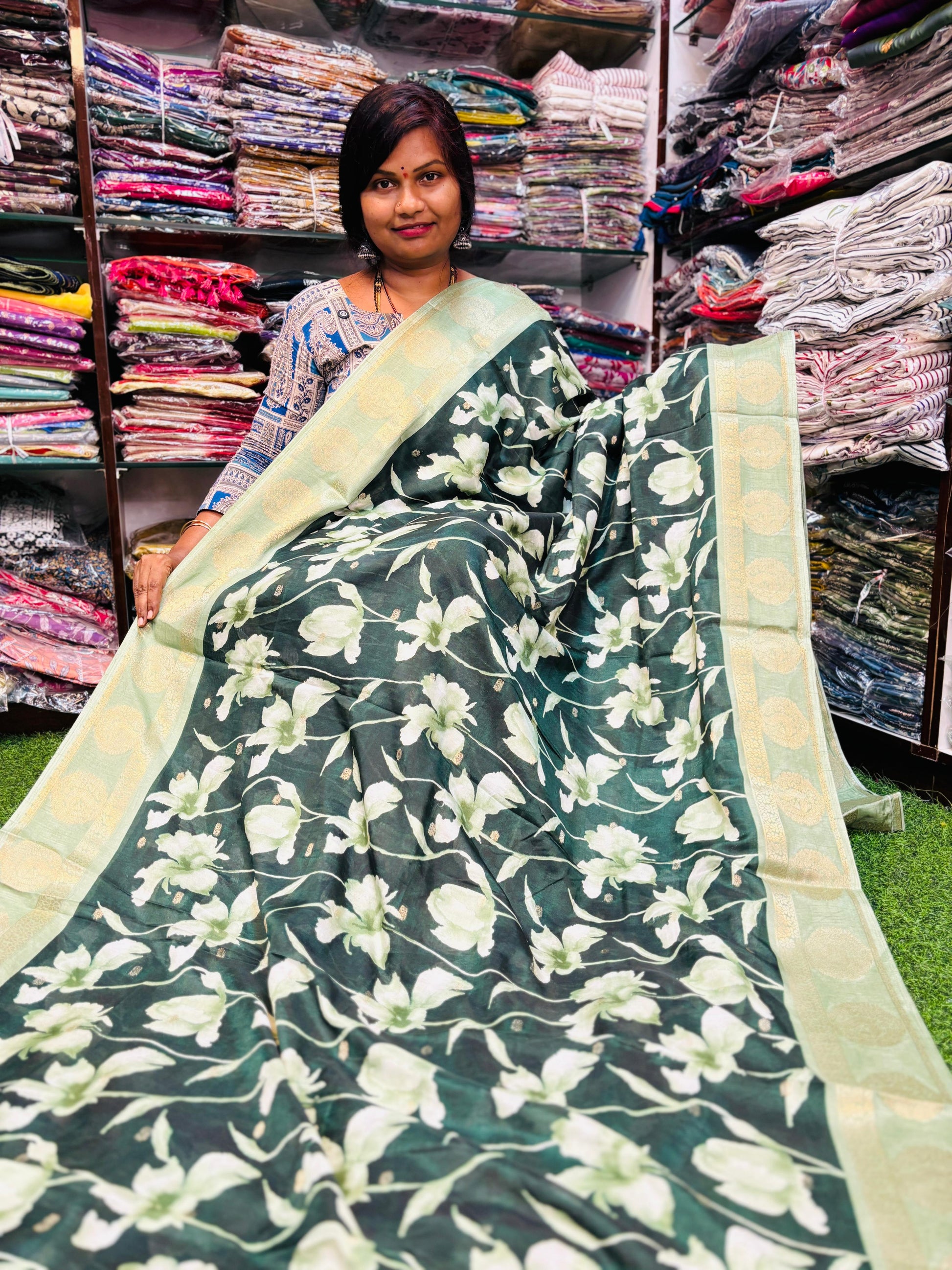 Experience the beauty of traditional Mangalagiri peacock borders with a modern twist. These borders are digitally highlighted with floral designs for an elegant touch. Made with high-quality materials, this product is a perfect addition to your ethnic wardrobe. Upgrade your style game with these exquisite borders. Price at 880/-.