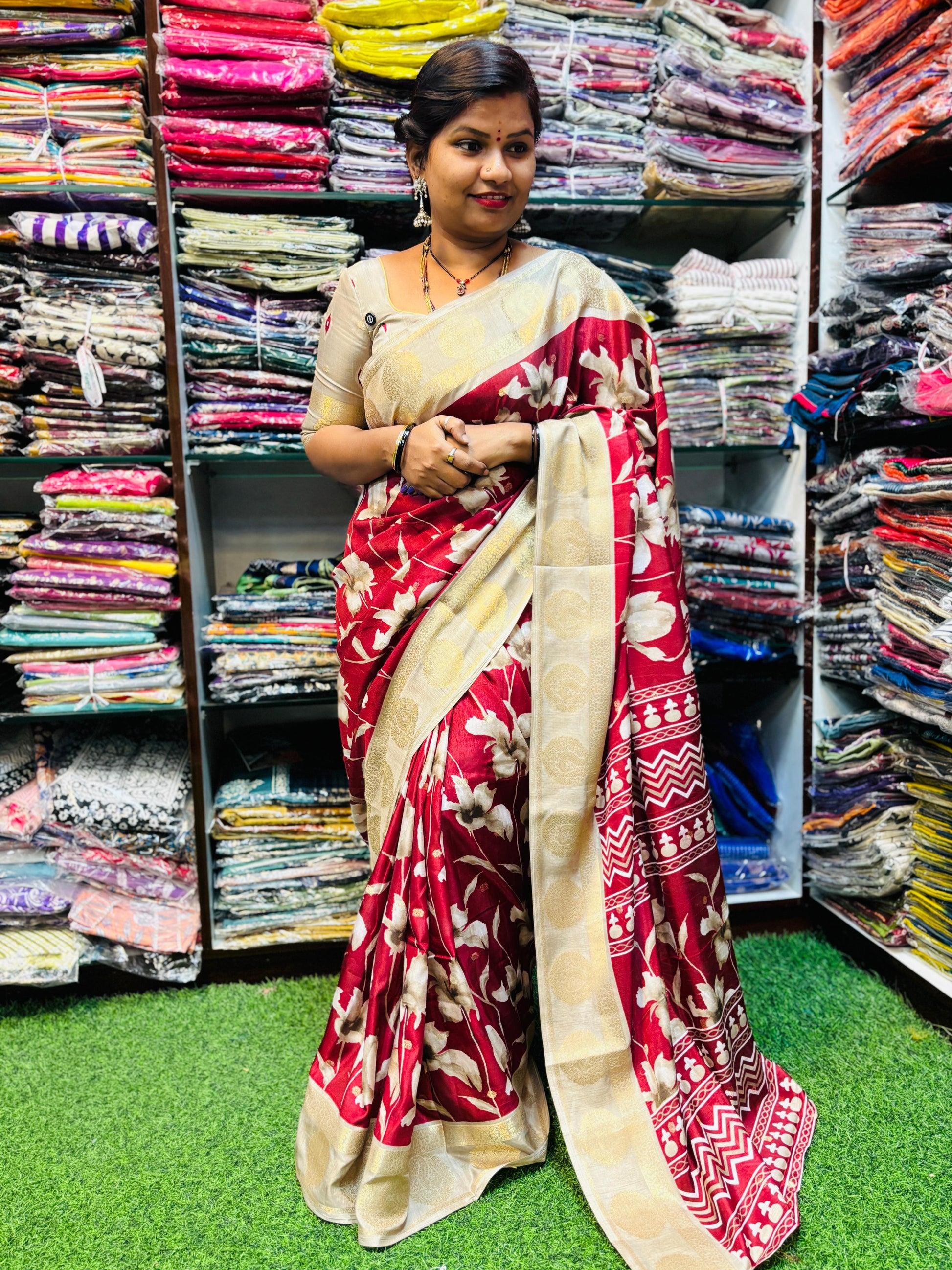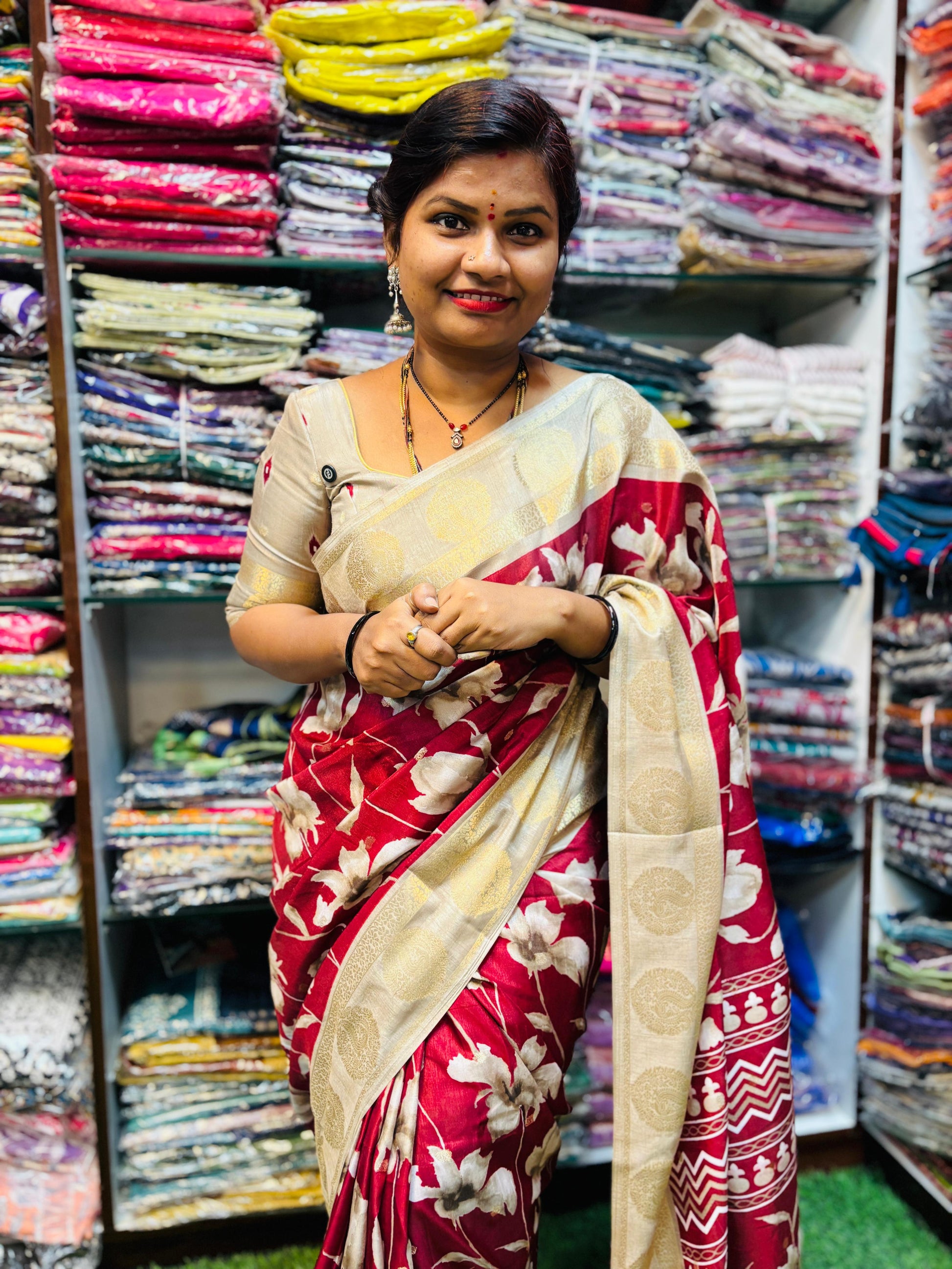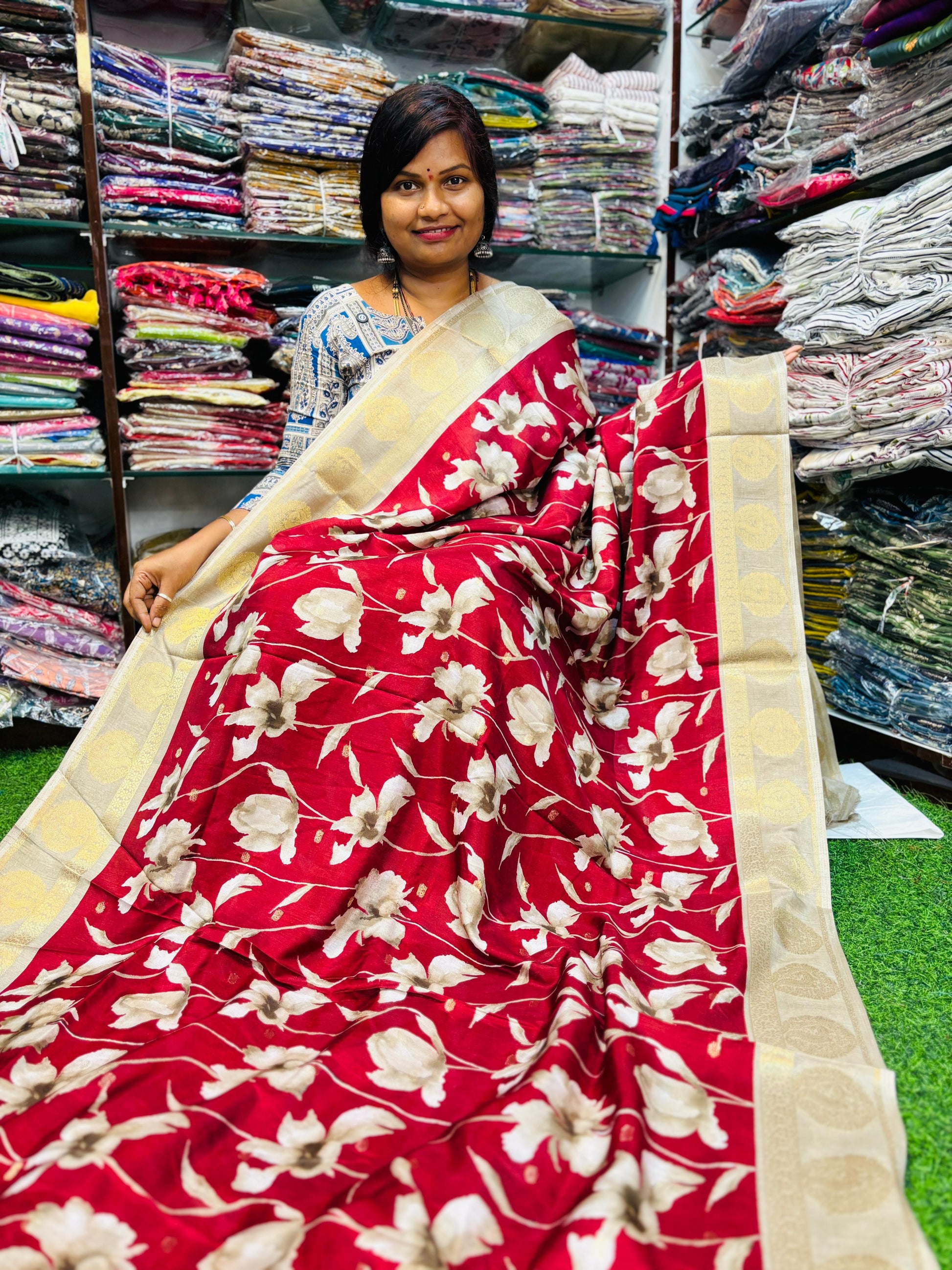 Experience the beauty of traditional Mangalagiri peacock borders with a modern twist. These borders are digitally highlighted with floral designs for an elegant touch. Made with high-quality materials, this product is a perfect addition to your ethnic wardrobe. Upgrade your style game with these exquisite borders. Price at 880/-.