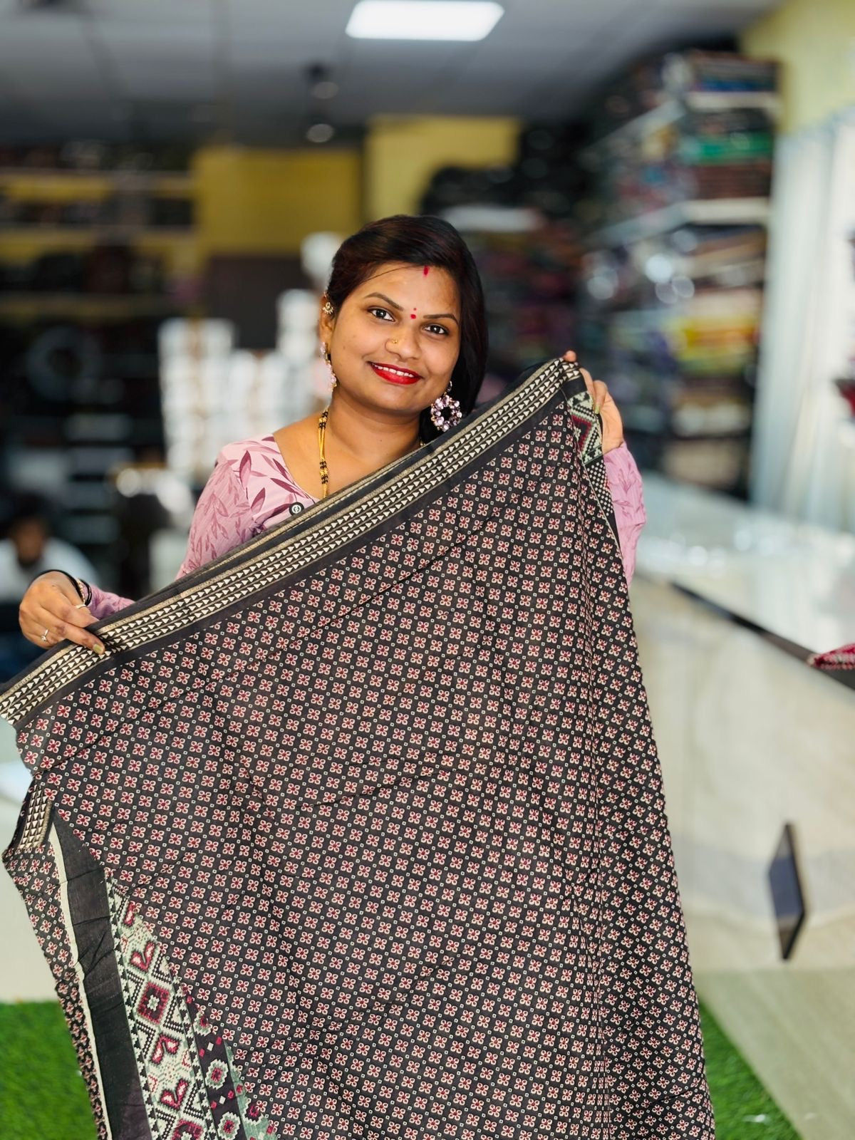 The vibrant red shade with detailed geometric motifs adds a bold yet graceful charm, making it ideal for festive wear, casual outings, and daily elegance. Maheshwari-style weaving is known for its lightweight feel and classy borders, giving you both comfort and a royal look .