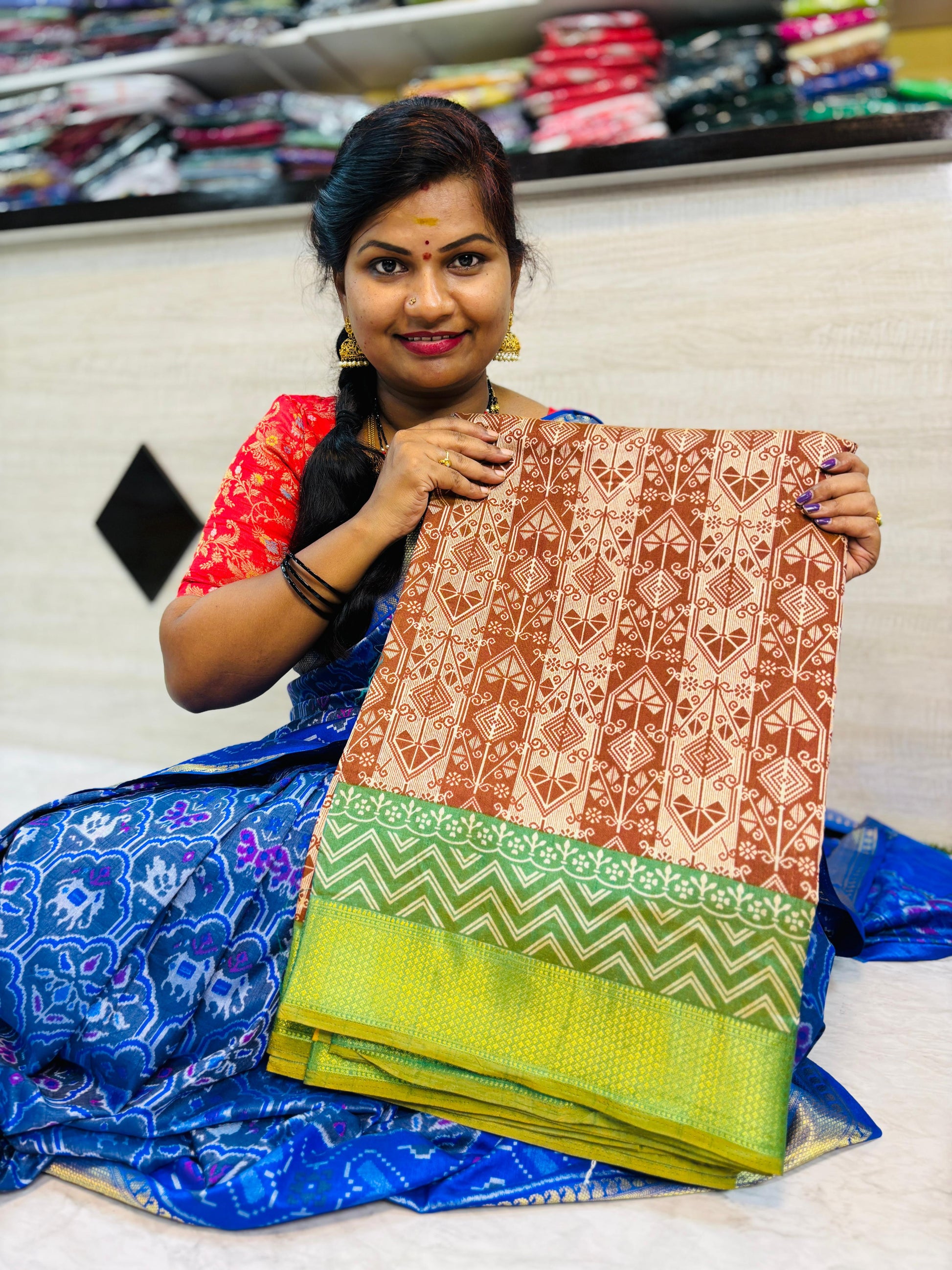 Pochampally Sarees is a traditional Indian silk saree, known for its exquisite handloom work and vibrant colors. Made in the Pochampally village of India, this saree is crafted for a luxurious and comfortable feel. Perfect for weddings and special occasions, Pochampally saree offers a unique and elegant look.