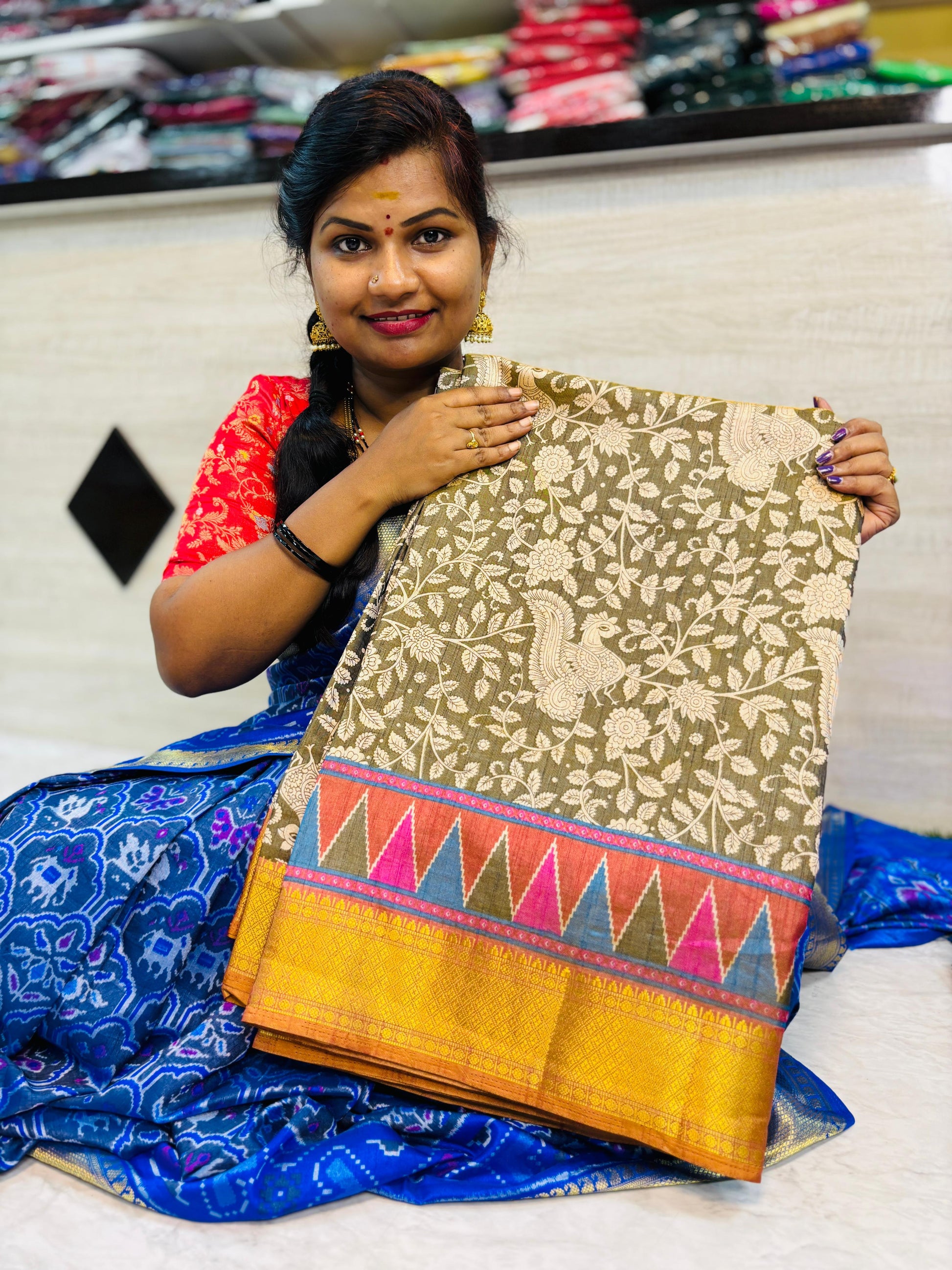 Pochampally Sarees is a traditional Indian silk saree, known for its exquisite handloom work and vibrant colors. Made in the Pochampally village of India, this saree is crafted for a luxurious and comfortable feel. Perfect for weddings and special occasions, Pochampally saree offers a unique and elegant look.