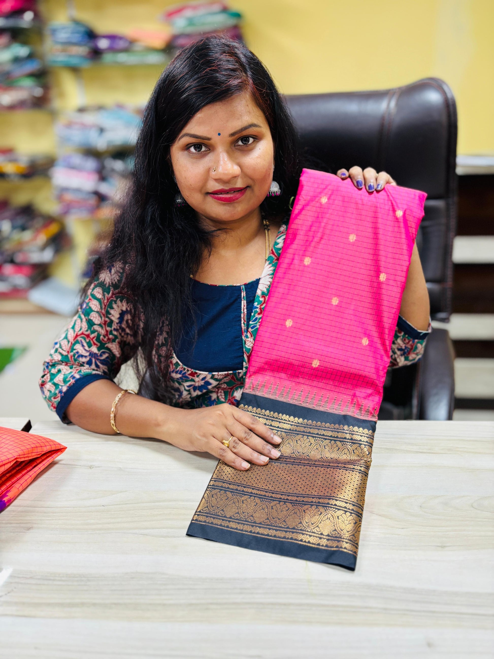 This Semi Gadwal fabric is expertly crafted with a unique blend of materials, resulting in a luxurious and durable product. Its rich texture and intricate weave provide a sophisticated touch to any garment. With its exceptional quality, this fabric is sure to elevate your wardrobe with timeless elegance.
