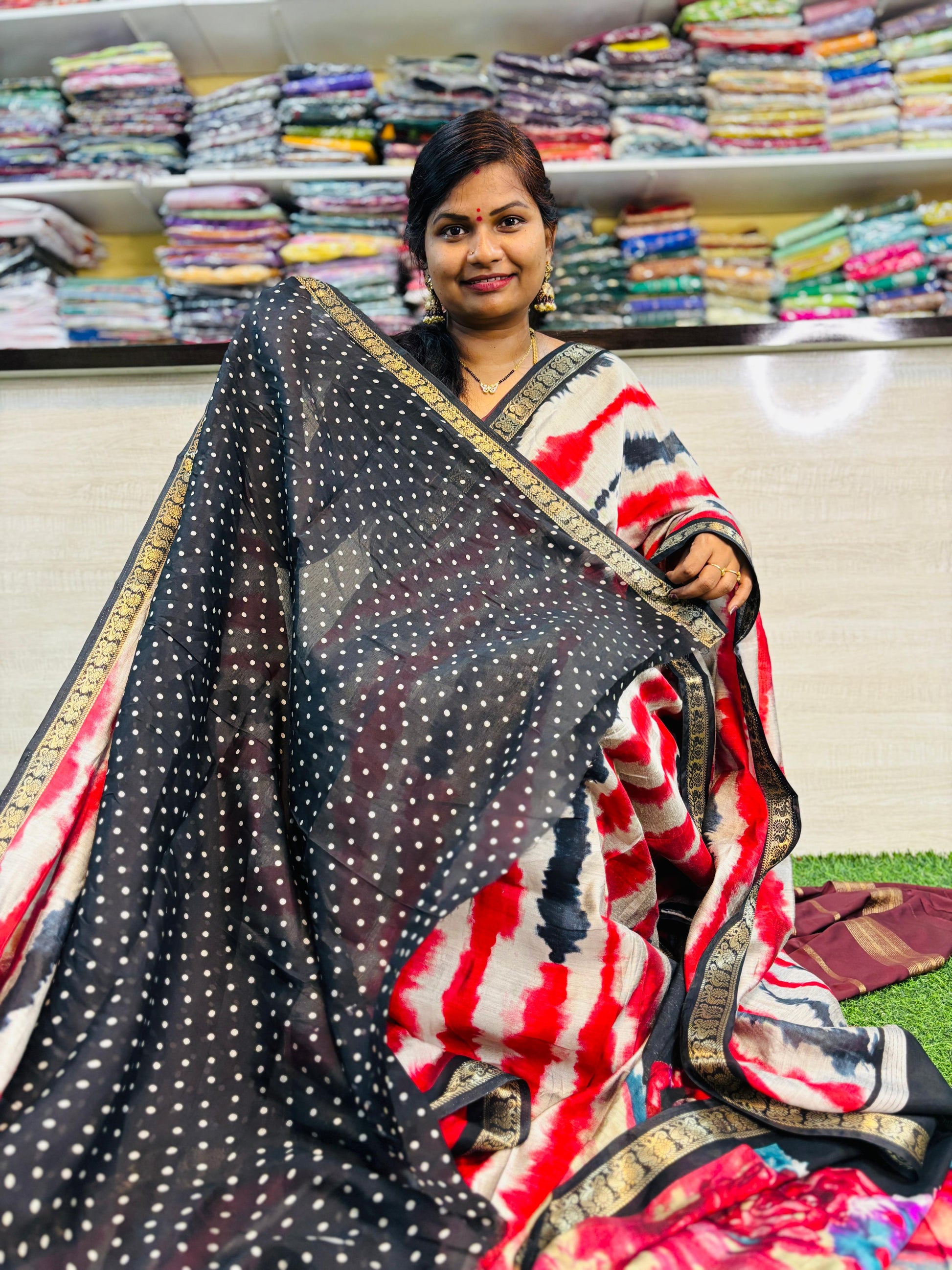Enhance the allure of your traditional outfits with Sibbori Mangalagiri Rasmalai borders. This exquisite contrast blouse features a Maheswarisilk finish and is priced at only 950/-. Elevate your wardrobe with expertly crafted, high-quality borders you can trust.
