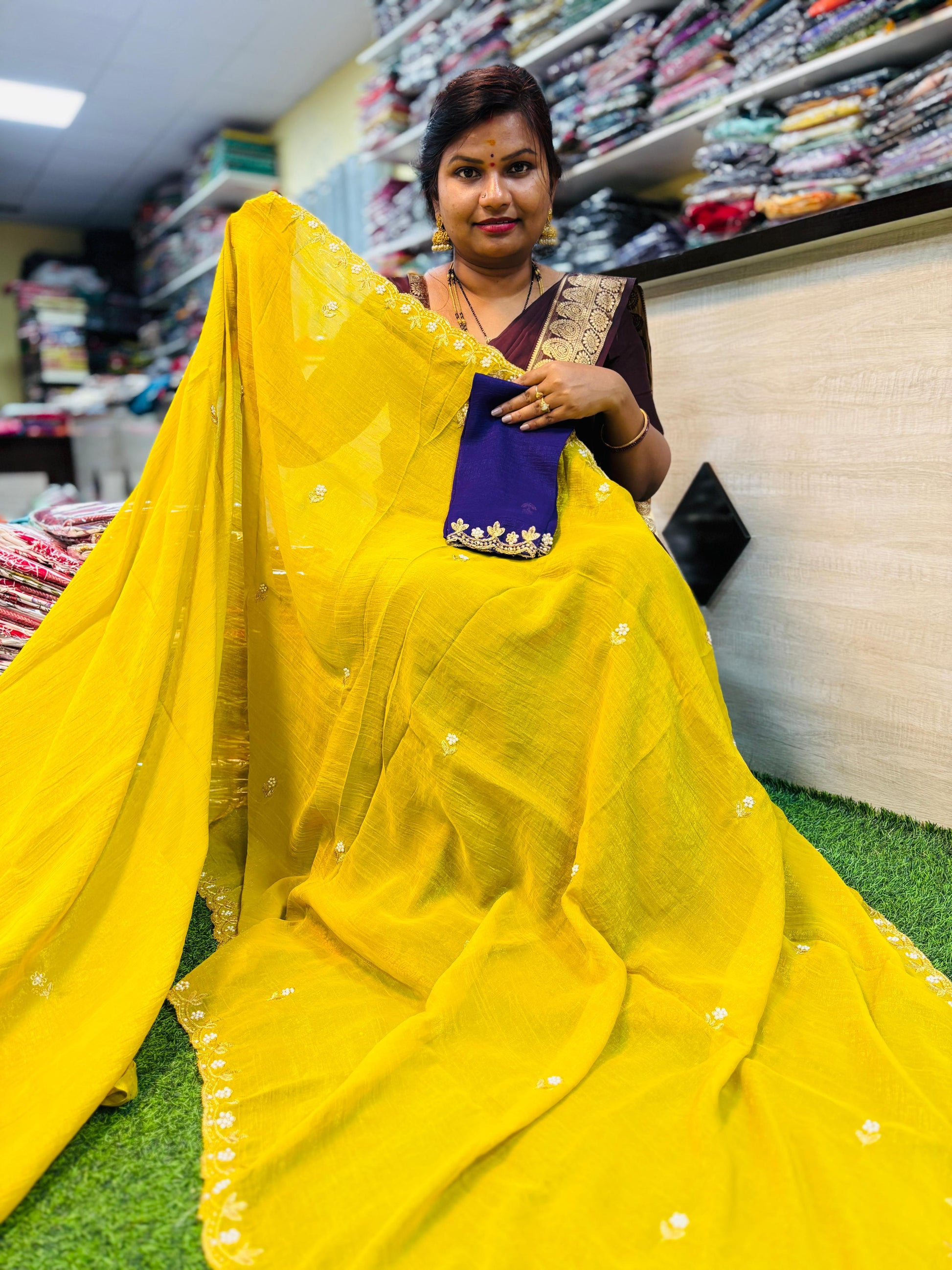Add a touch of subtle luxury to your wardrobe with this beautifully crafted saree featuring elegant space pearl border detailing. Designed for effortless grace and everyday comfort, this saree offers a soft feel with a smooth, graceful fall. The delicate pearl-style border enhances the overall look with a refined festive touch, making it perfect for both casual elegance and special occasions.