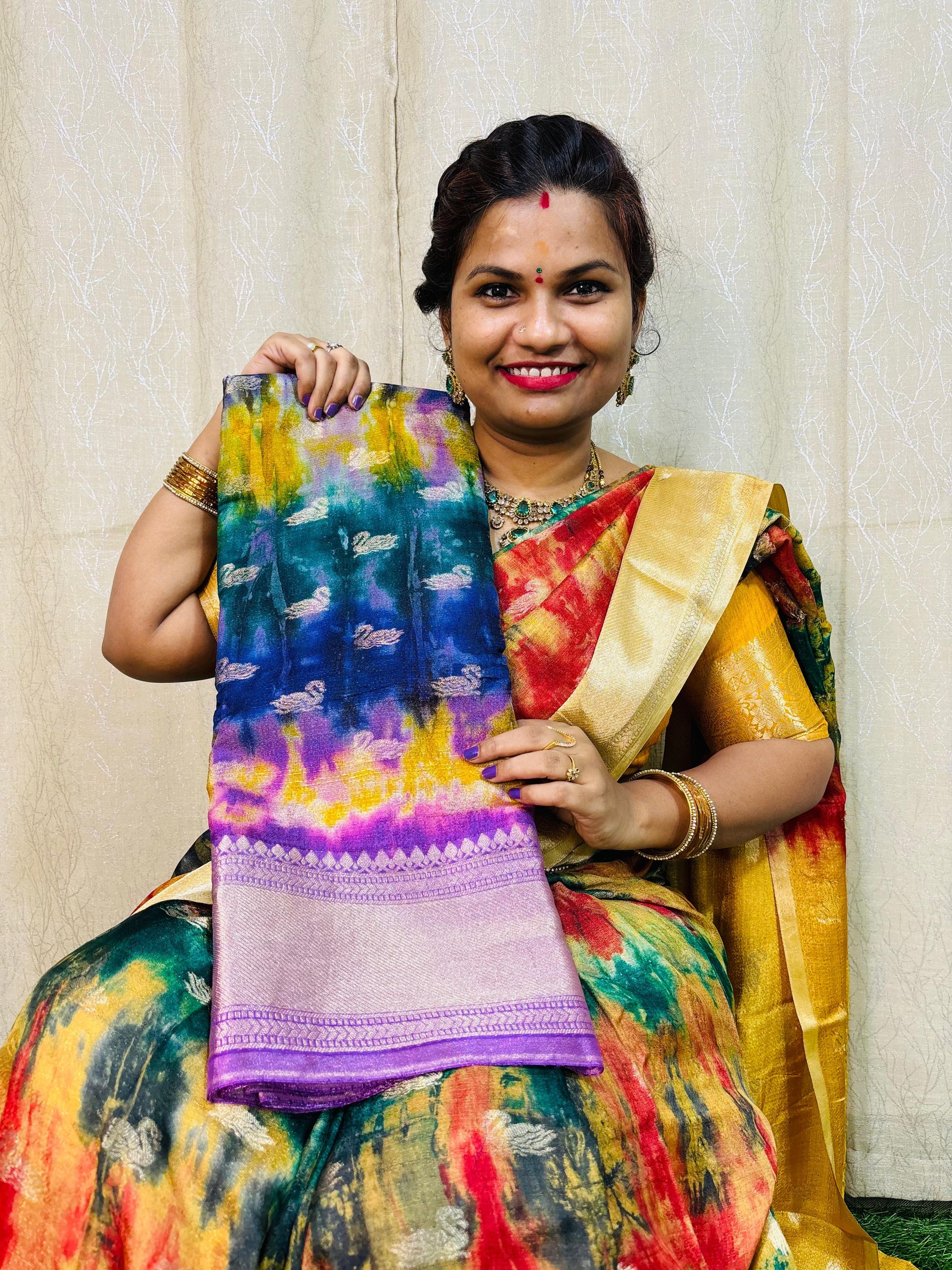 This expertly crafted Sibbori features striking Kanchi borders that beautifully contrast with the intricate butties blouse. Experience the traditional art of tie and die in a modern garment, perfect for any occasion. Elevate your style with this unique piece that seamlessly blends tradition and innovation.