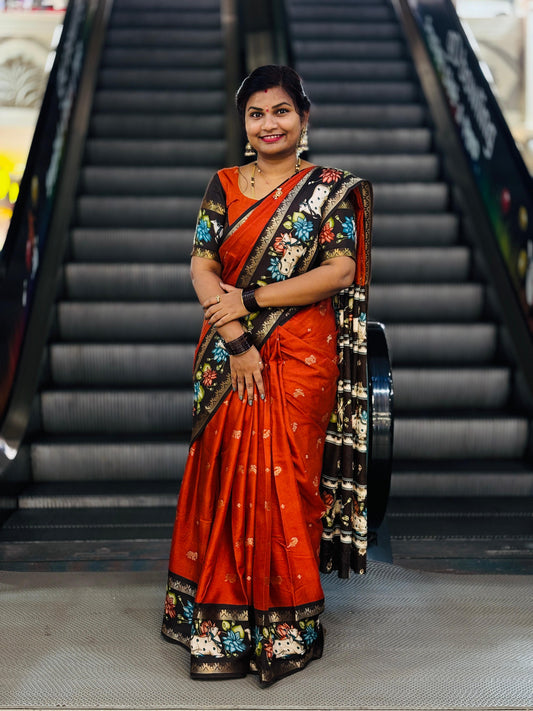 Rust Orange Mangalgiri Pichwai Pattu Sarees