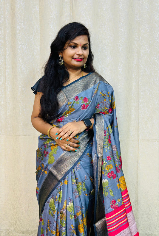 నేయడం అంచులతో డోలా క్రేప్ సిల్క్ చీరలు