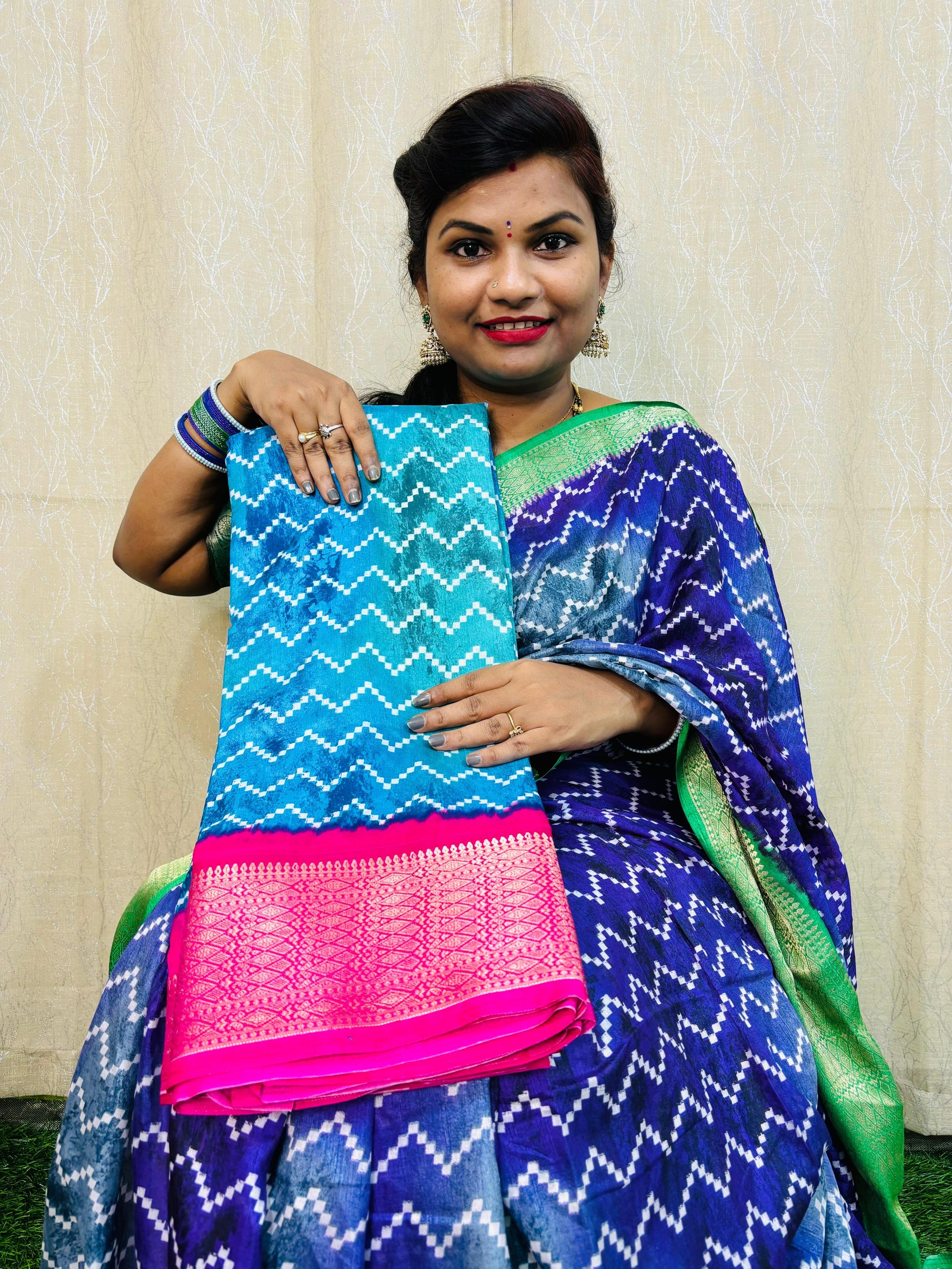 ప్రీమియం క్వాలిటీ 2డి సిబోబోరి ఇక్కత్ ప్రింటెడ్ డోలా చీరలు