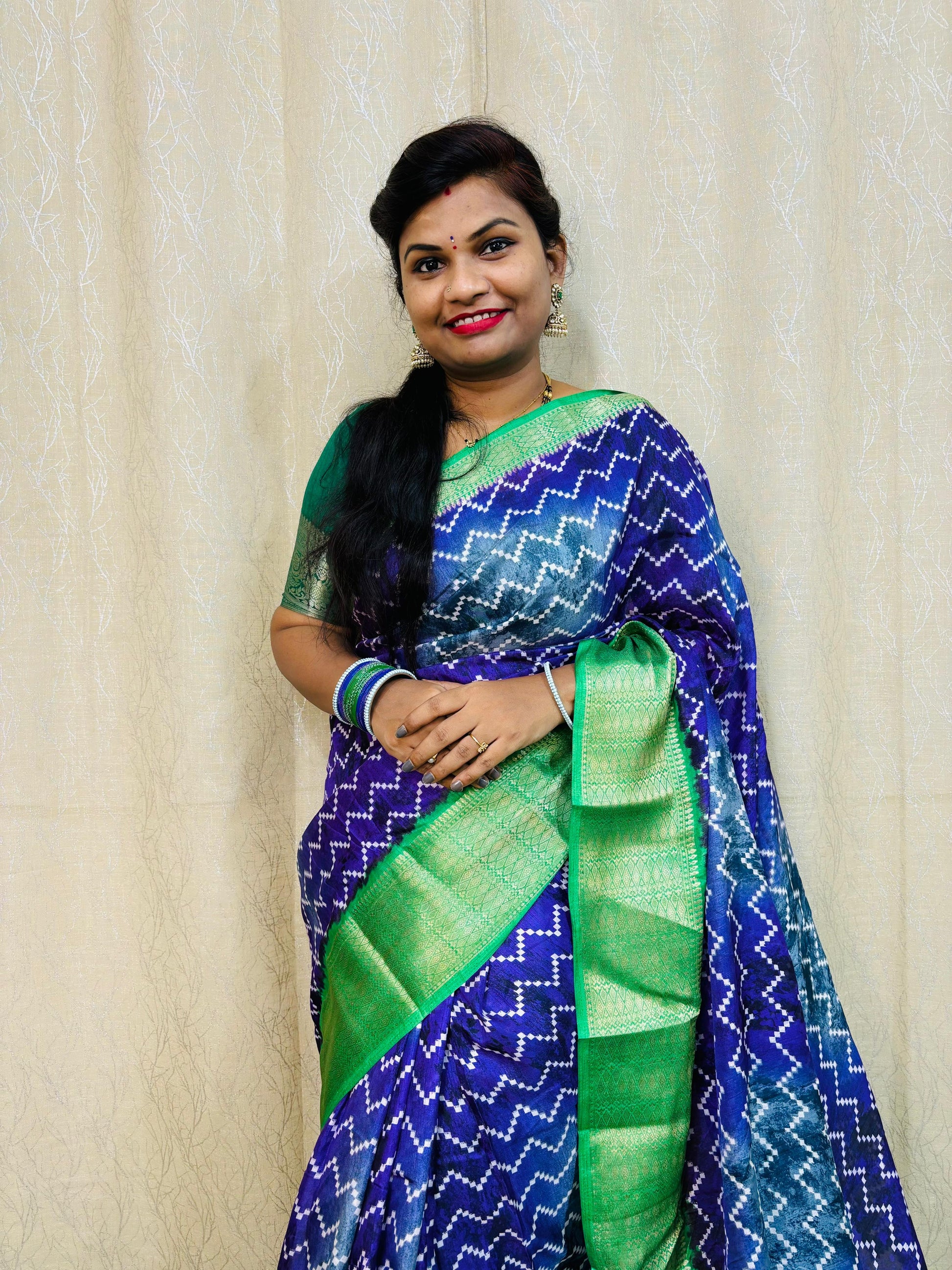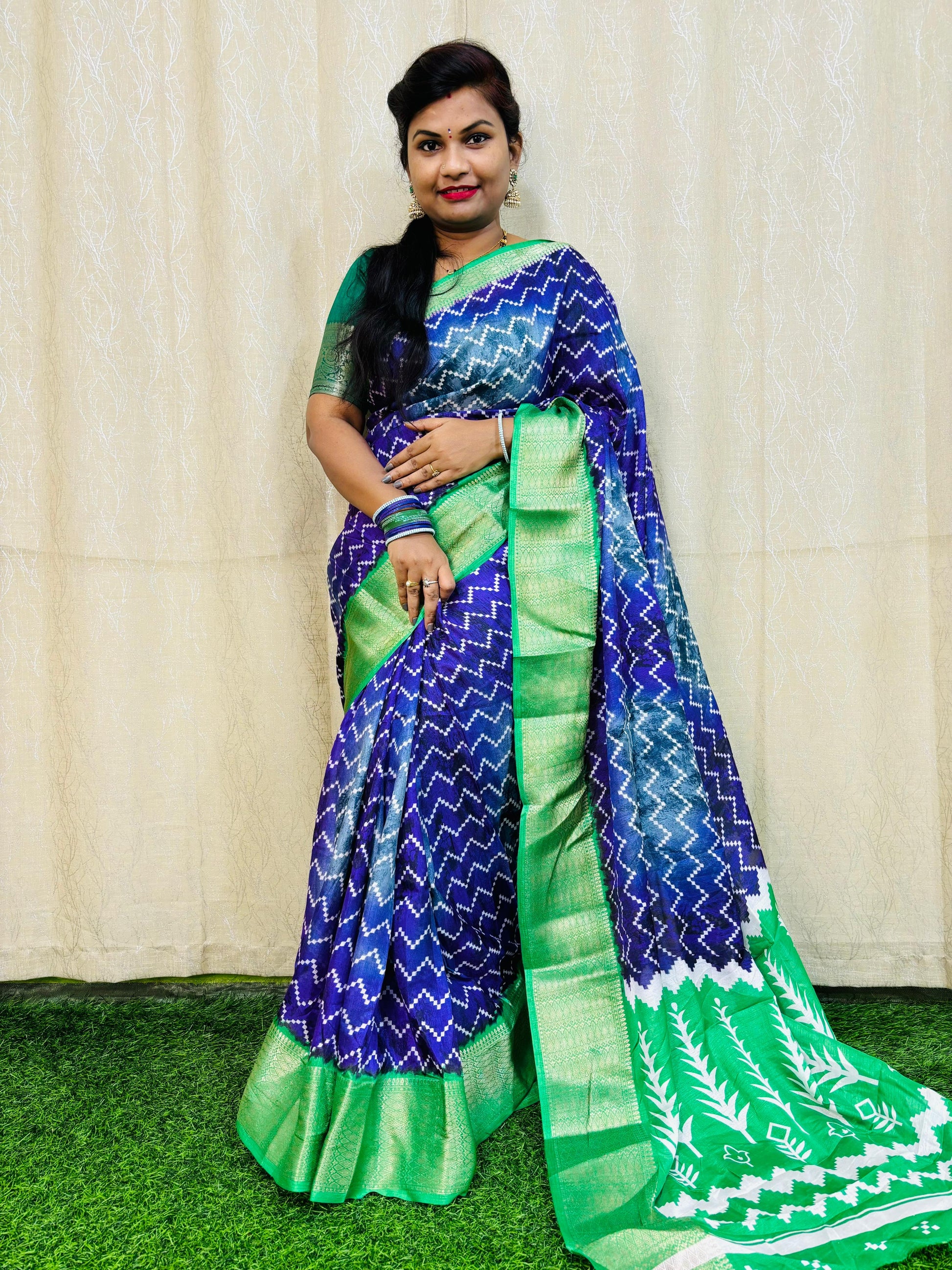 ప్రీమియం క్వాలిటీ 2డి సిబోబోరి ఇక్కత్ ప్రింటెడ్ డోలా చీరలు