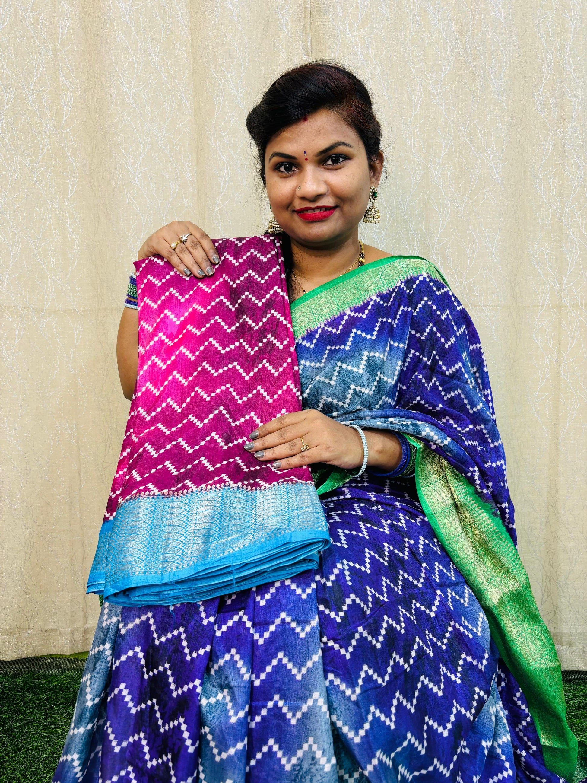ప్రీమియం క్వాలిటీ 2డి సిబోబోరి ఇక్కత్ ప్రింటెడ్ డోలా చీరలు