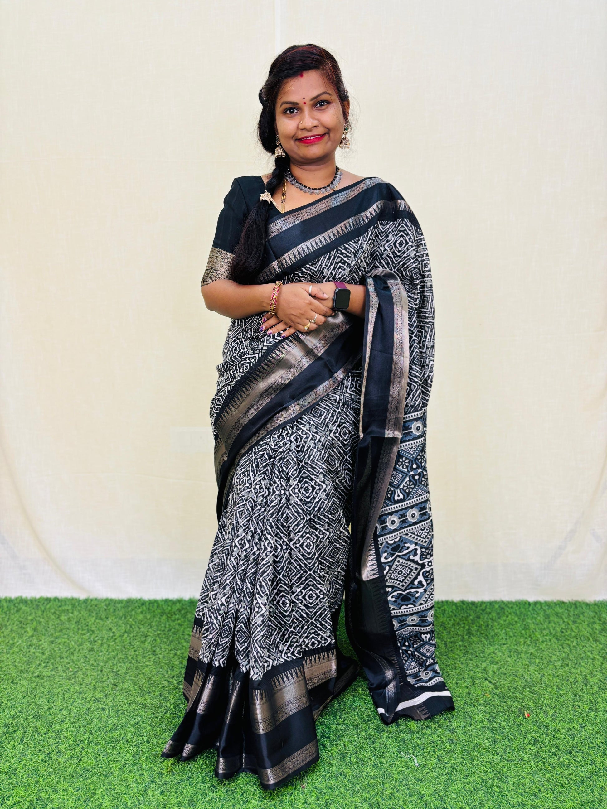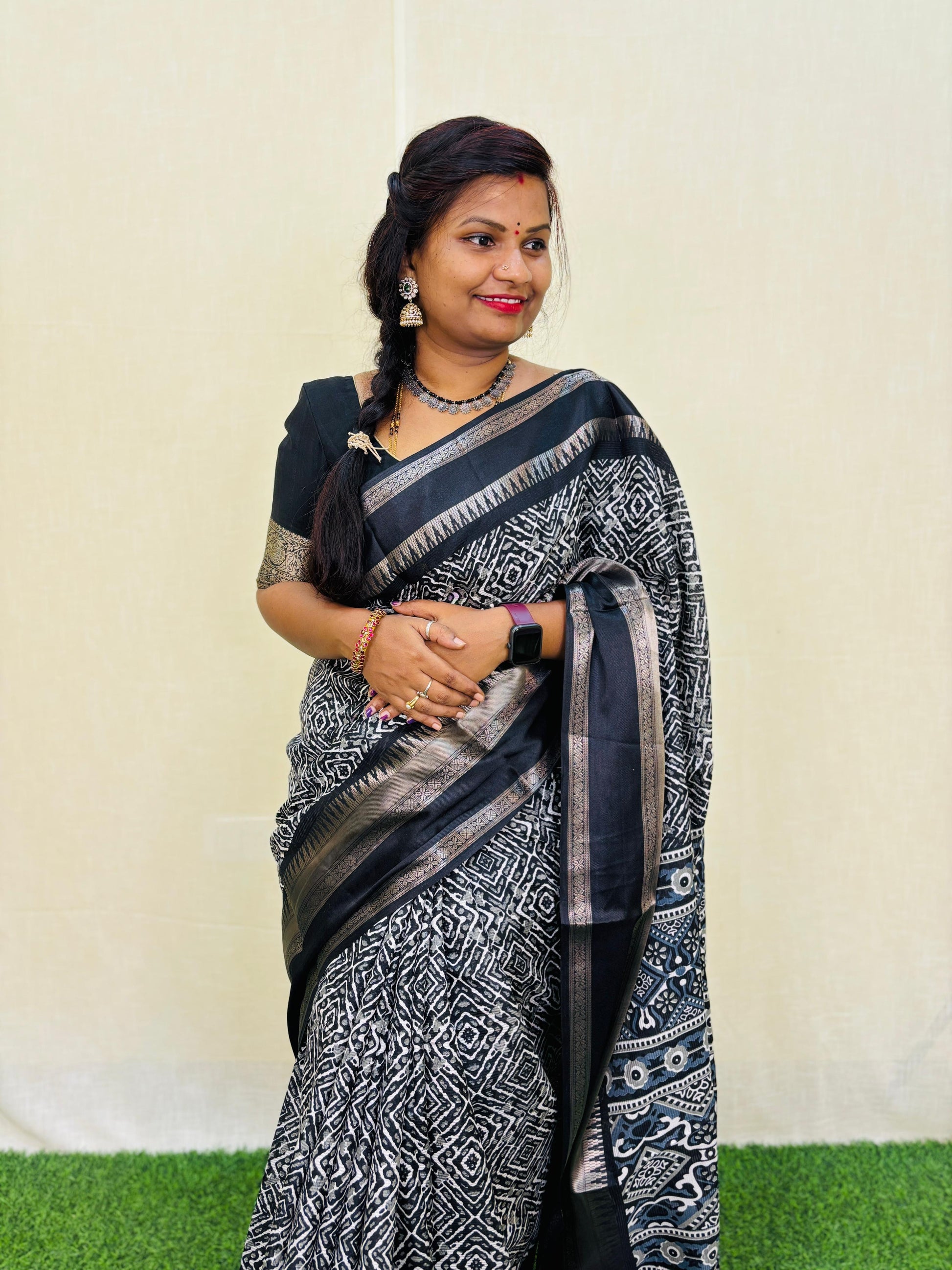 The Azrak Dola Silk Saree features intricate Azrak Dola design and elegant gap borders. Made with premium silk, this saree exudes sophistication and traditional charm. Elevate your style with this timeless and unique piece.