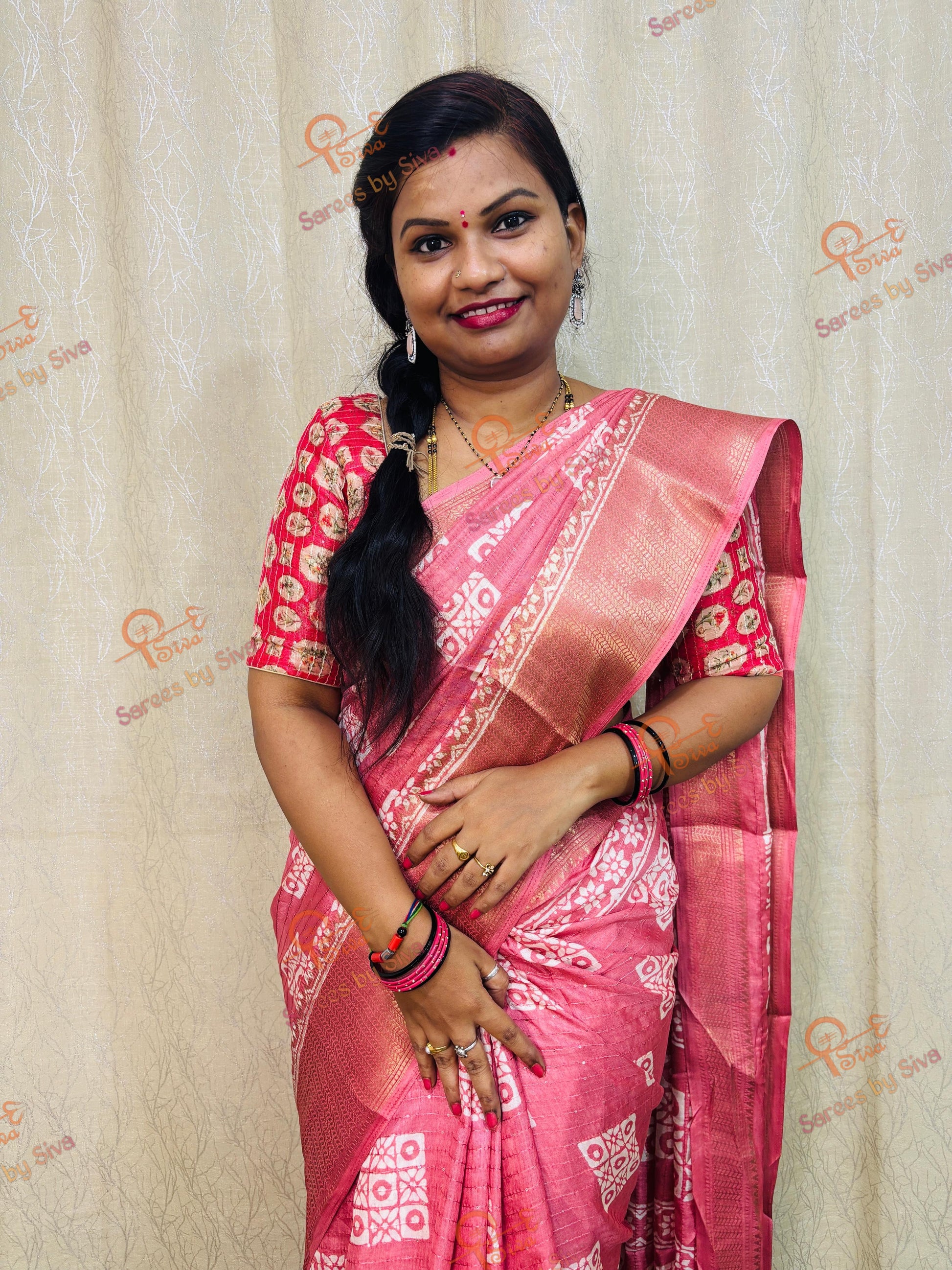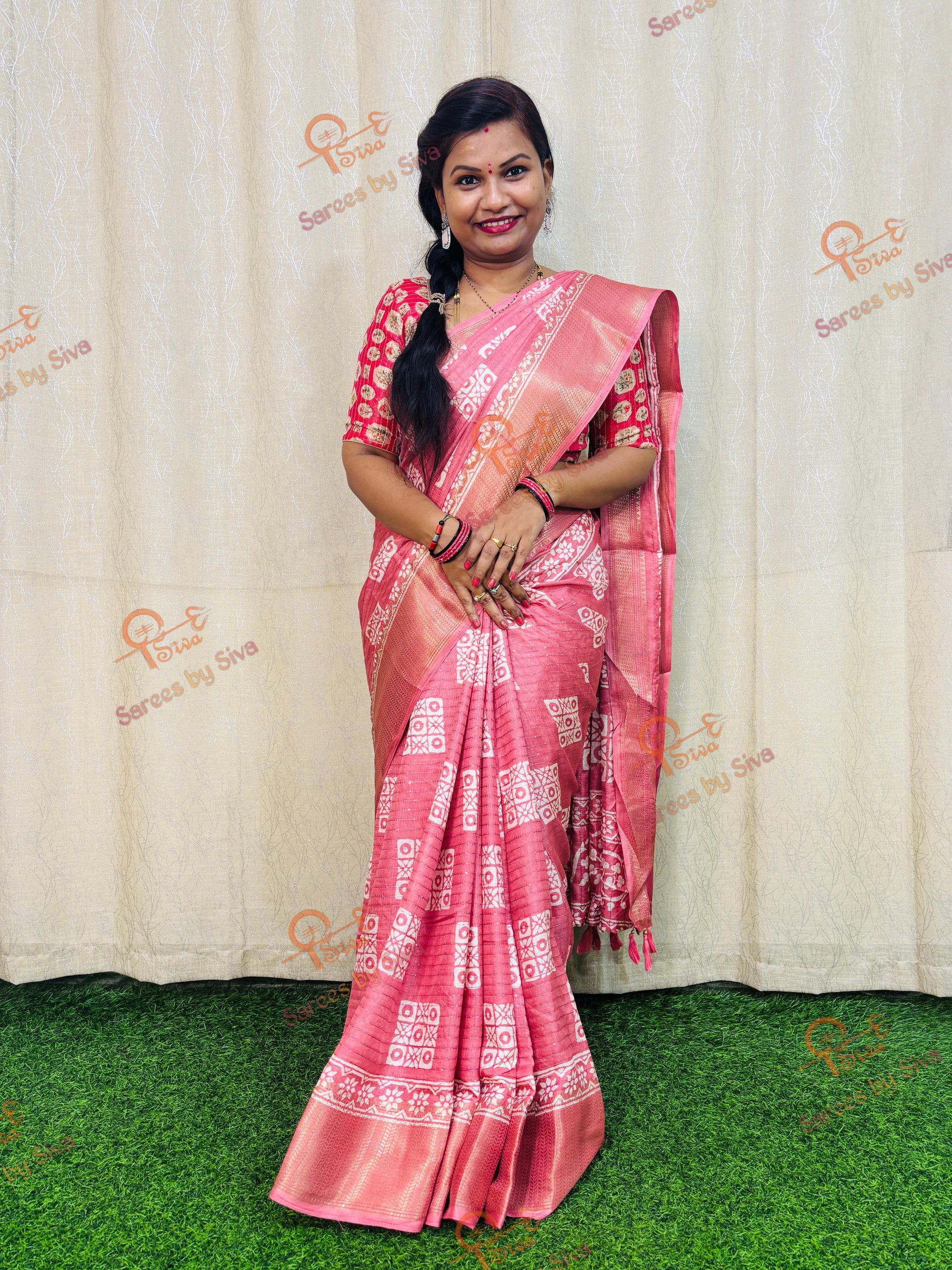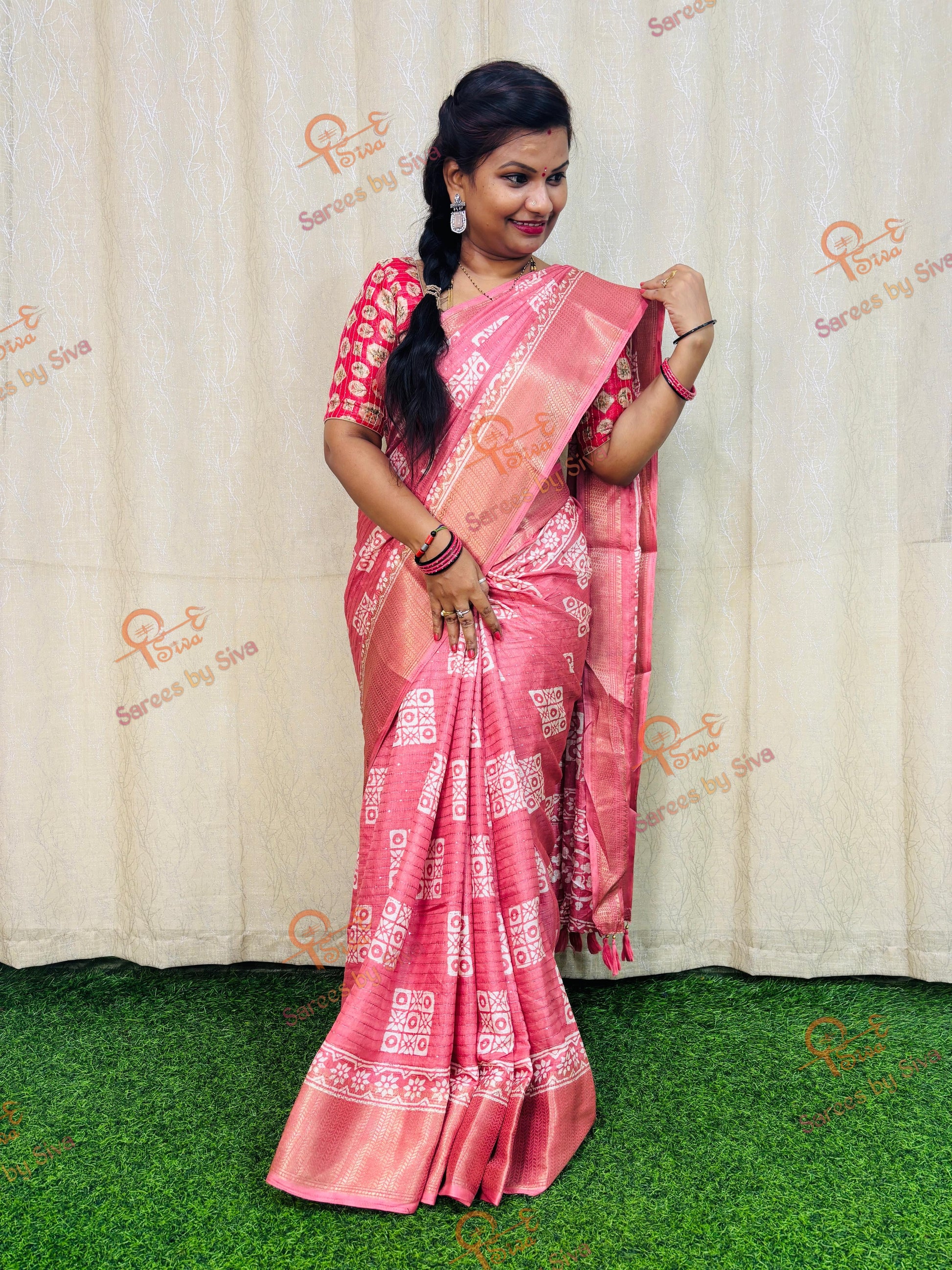 మా బాగ్రు బోటిక్ సీక్వెన్స్ చీరల యొక్క గొప్ప సంప్రదాయం మరియు ఉత్సాహభరితమైన రంగులను కనుగొనండి. నేత సరిహద్దులతో జాగ్రత్తగా రూపొందించబడిన ఈ చీరలు ఏ సందర్భానికైనా చక్కదనం మరియు విలాసవంతమైన అనుభూతిని తెస్తాయి. ప్రతి చీర ప్రత్యేకమైన ప్రింట్ను కలిగి ఉన్న సెల్ఫ్ బ్లౌజ్తో వస్తుంది. కేవలం 750/- సరసమైన ధర వద్ద, ఈ అద్భుతమైన చీరల అందం మరియు పనితనాన్ని అనుభవించండి.