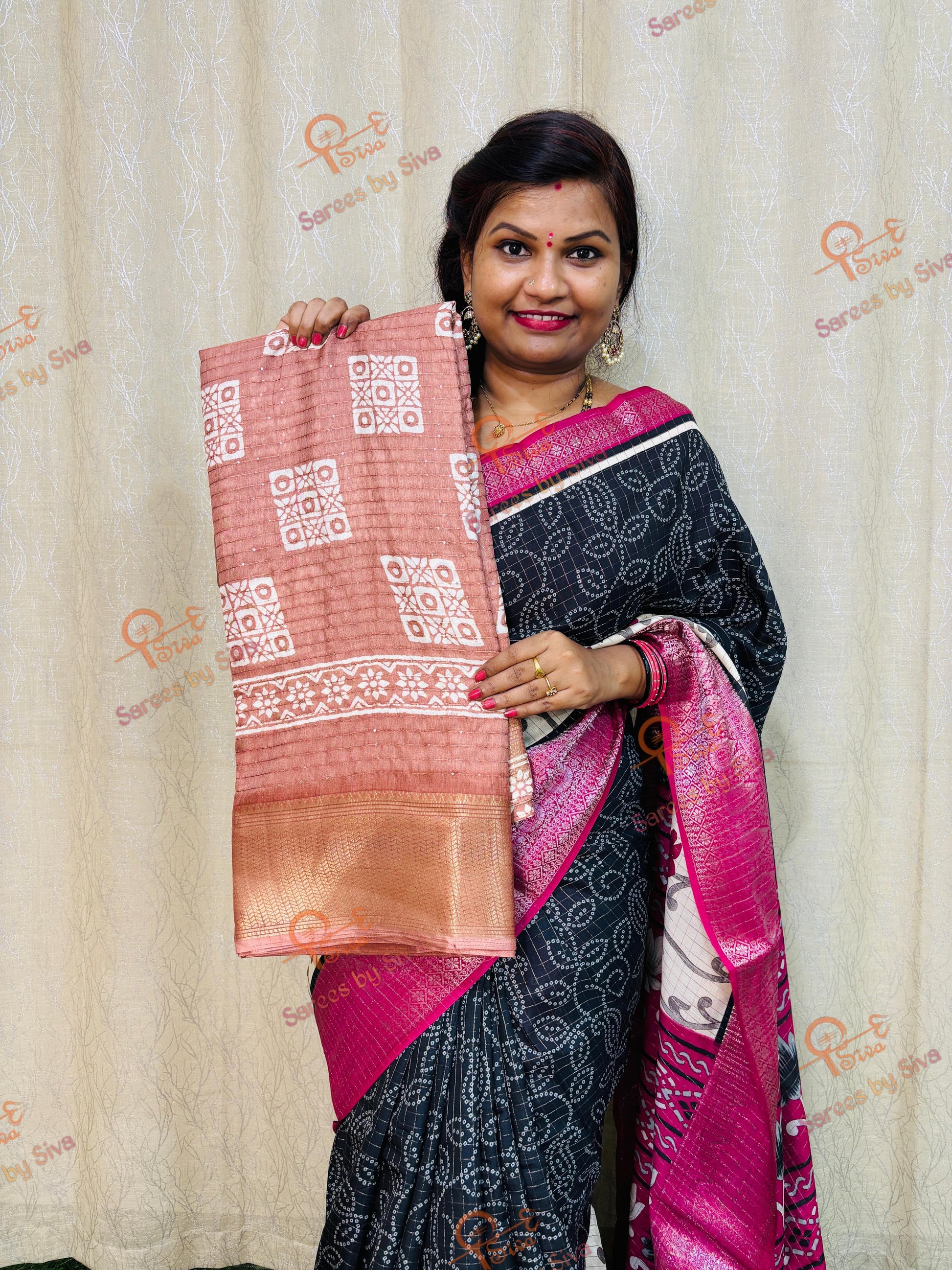 మా బాగ్రు బోటిక్ సీక్వెన్స్ చీరల యొక్క గొప్ప సంప్రదాయం మరియు ఉత్సాహభరితమైన రంగులను కనుగొనండి. నేత సరిహద్దులతో జాగ్రత్తగా రూపొందించబడిన ఈ చీరలు ఏ సందర్భానికైనా చక్కదనం మరియు విలాసవంతమైన అనుభూతిని తెస్తాయి. ప్రతి చీర ప్రత్యేకమైన ప్రింట్ను కలిగి ఉన్న సెల్ఫ్ బ్లౌజ్తో వస్తుంది. కేవలం 750/- సరసమైన ధర వద్ద, ఈ అద్భుతమైన చీరల అందం మరియు పనితనాన్ని అనుభవించండి.