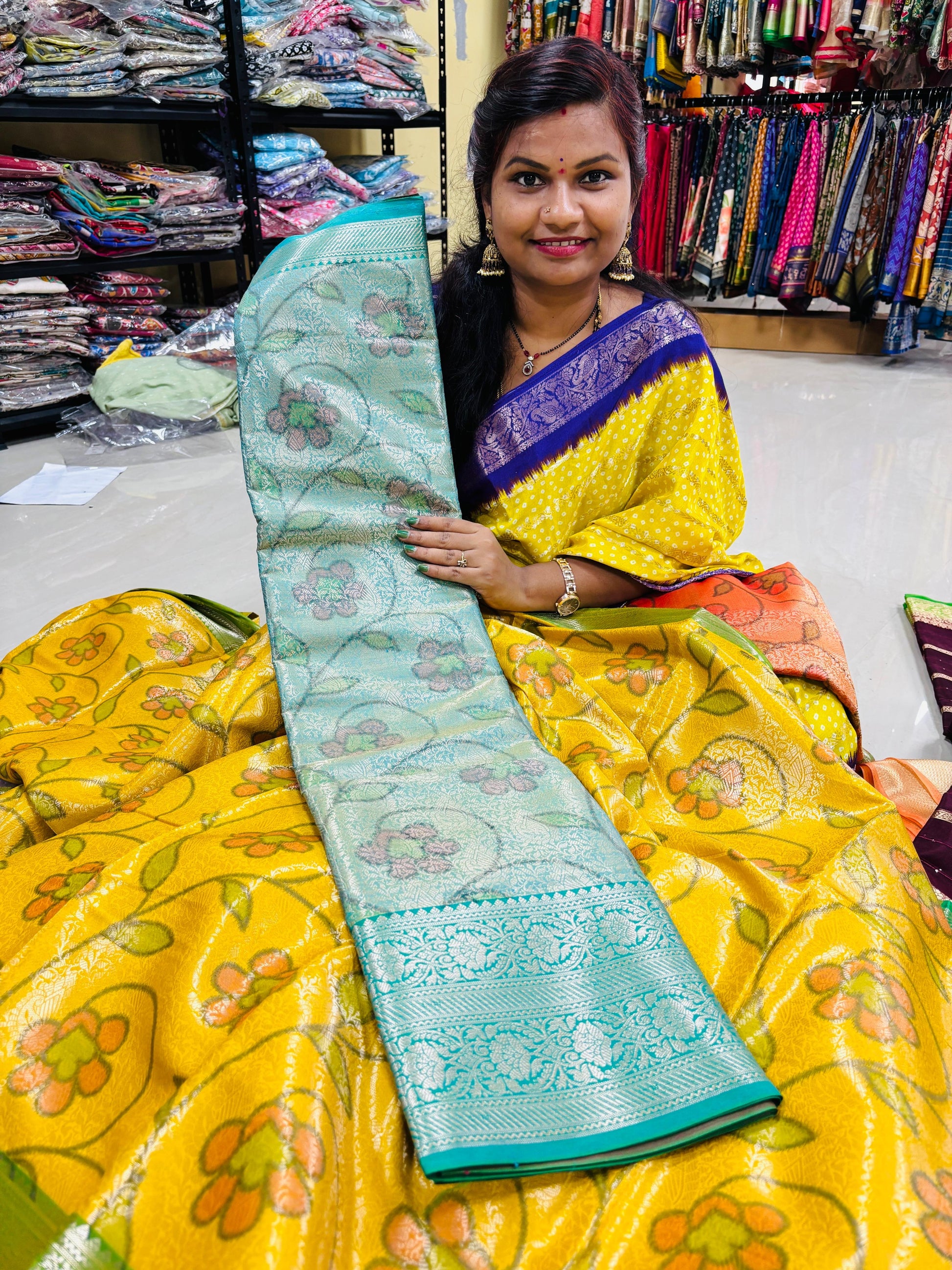 Crafted with intricate Banarasi Tissue fabric, these sarees showcase the timeless art of Kalamkari outlining. Elevate your ethnic wardrobe with the stunning blend of traditional and contemporary style. Experience the luxury and grace of these sarees for any occasion.