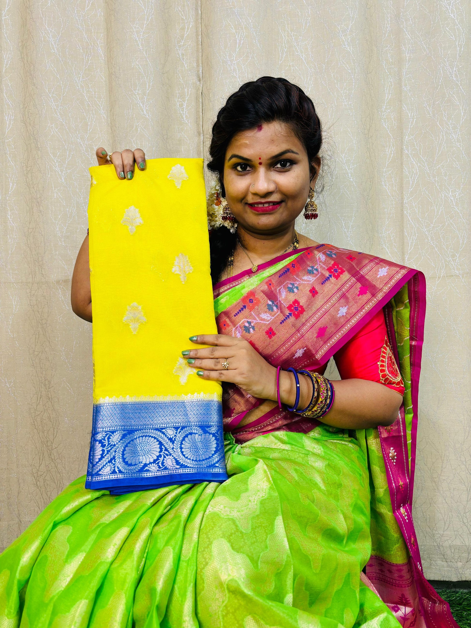 మా బనారసీ వెచ్చని పట్టు చీరలతో విలాసవంతమైన వెచ్చదనం మరియు శైలిని అనుభవించండి. ప్రీమియం నాణ్యమైన బనారసీ ఫాబ్రిక్తో తయారు చేయబడిన, మా చీరలు అప్రయత్నంగా సొగసైనవిగా కనిపించేటప్పుడు మిమ్మల్ని హాయిగా మరియు సౌకర్యవంతంగా ఉంచుతాయి. సున్నితమైన హస్తకళ మరియు కలకాలం లేని డిజైన్తో, ఈ చీరలు ఏ ఫ్యాషన్-ఫార్వర్డ్ వార్డ్రోబ్కైనా తప్పనిసరిగా ఉండాలి.
