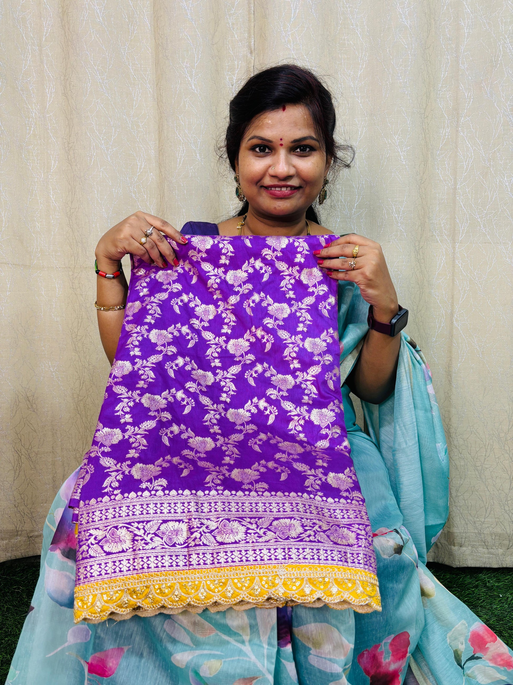 లేస్ బోర్డర్లు మరియు క్లిష్టమైన బట్టీస్ వర్క్తో బనారసి వీవింగ్ యొక్క విలాసవంతమైన చక్కదనాన్ని బ్లౌజ్పై అనుభవించండి. ఈ స్టేట్మెంట్ పీస్తో సంప్రదాయం మరియు అధునాతనతను జోడించండి. కేవలం 1199/- ధరకే లభించే ఇది మీ వార్డ్రోబ్కు తప్పనిసరిగా ఉండాలి.