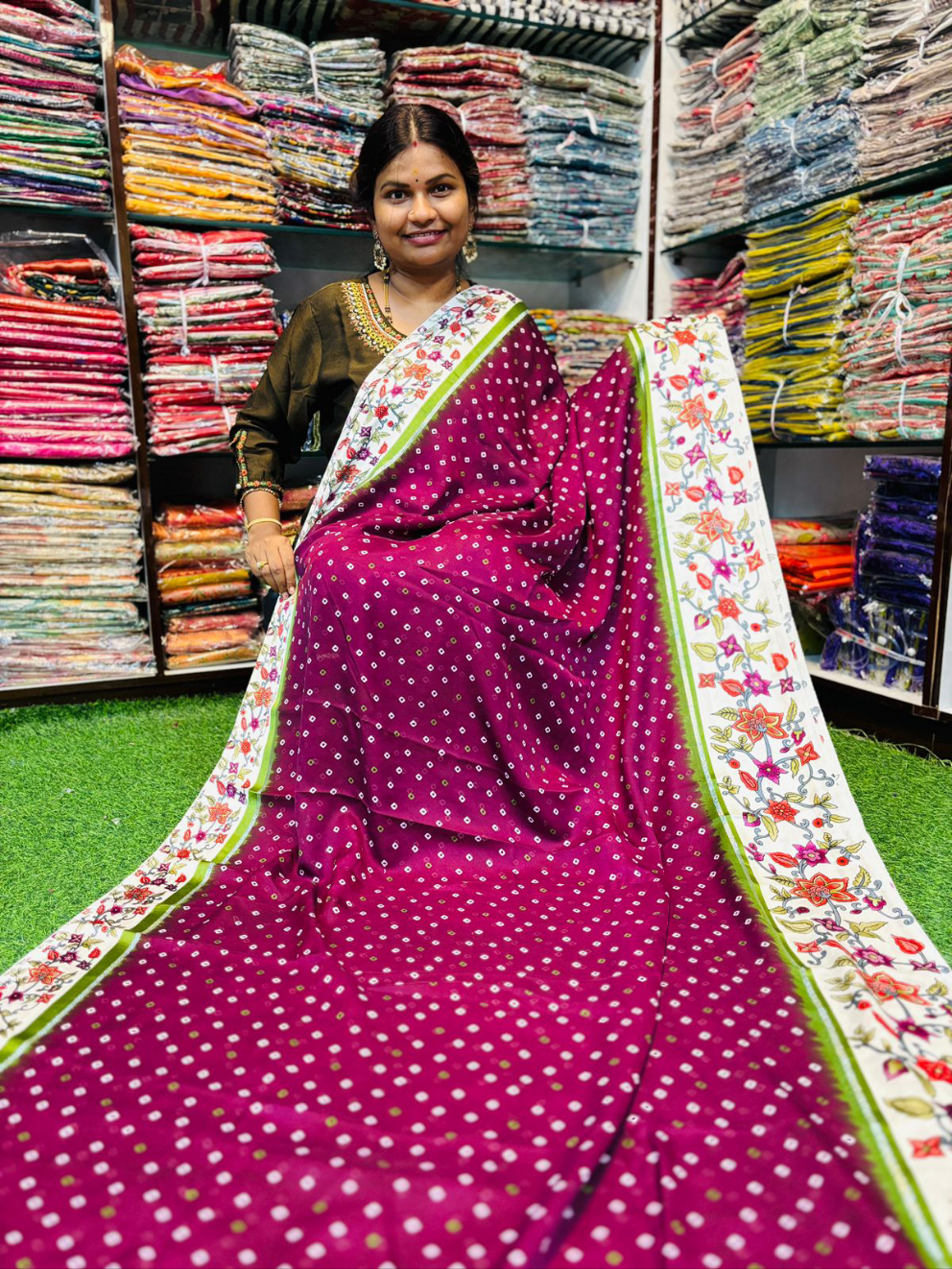 Discover the luxurious texture and elegant drape of Bandini Chiffon georgette fabric. Made from high-quality materials, this fabric is perfect for creating beautiful dresses, blouses, and scarves. Delicate and lightweight, it offers a comfortable and stylish option for any occasion. Elevate your wardrobe with the timeless beauty of Bandini Chiffon georgette.