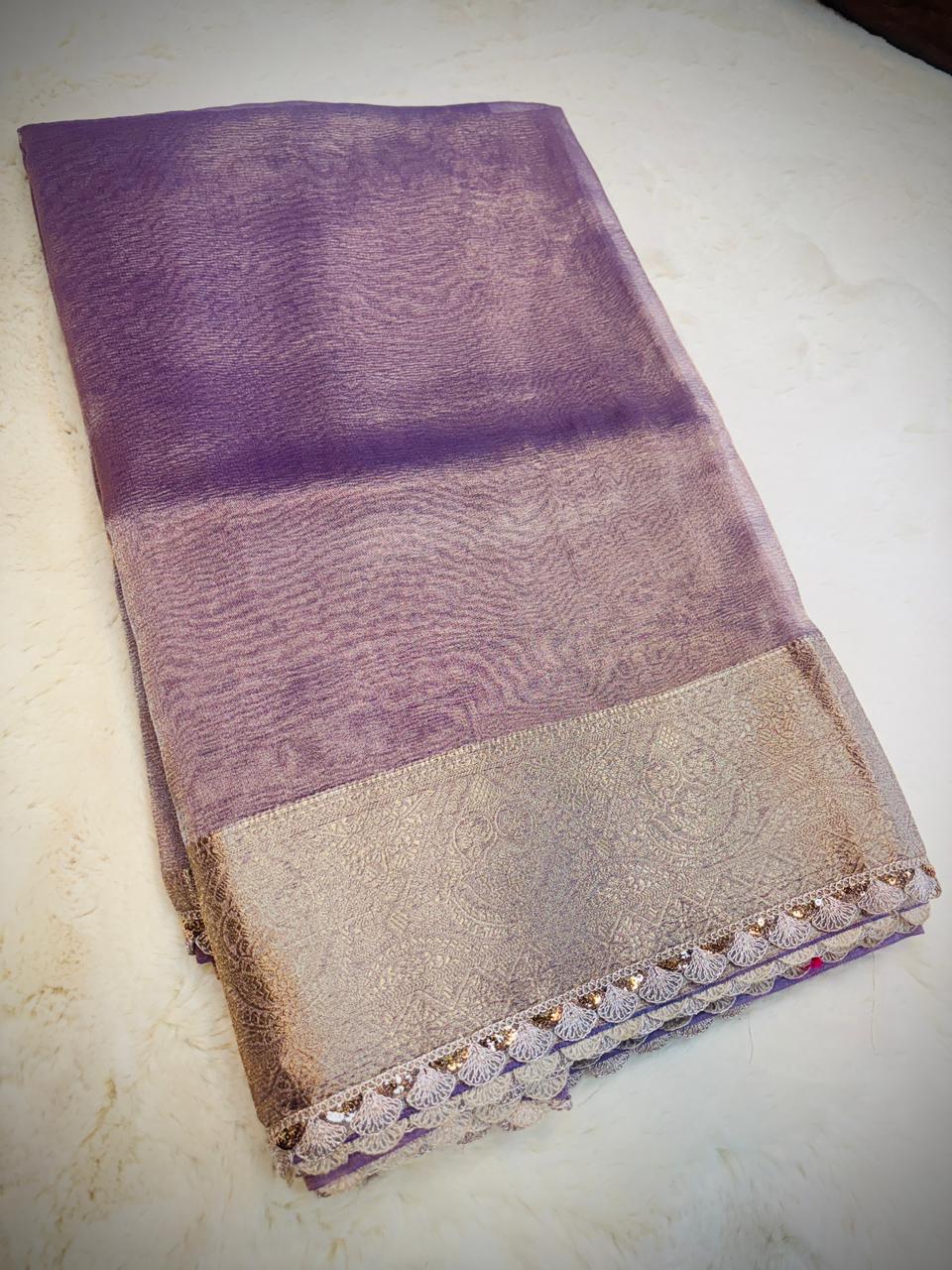 These tissue Kanchi borders add a touch of elegance to any clothing or fabric. Made with intricate craftsmanship, they feature delicate designs and vibrant colors, enhancing the aesthetic appeal of the product. Perfect for traditional outfits, these borders are sure to elevate the overall look and feel.