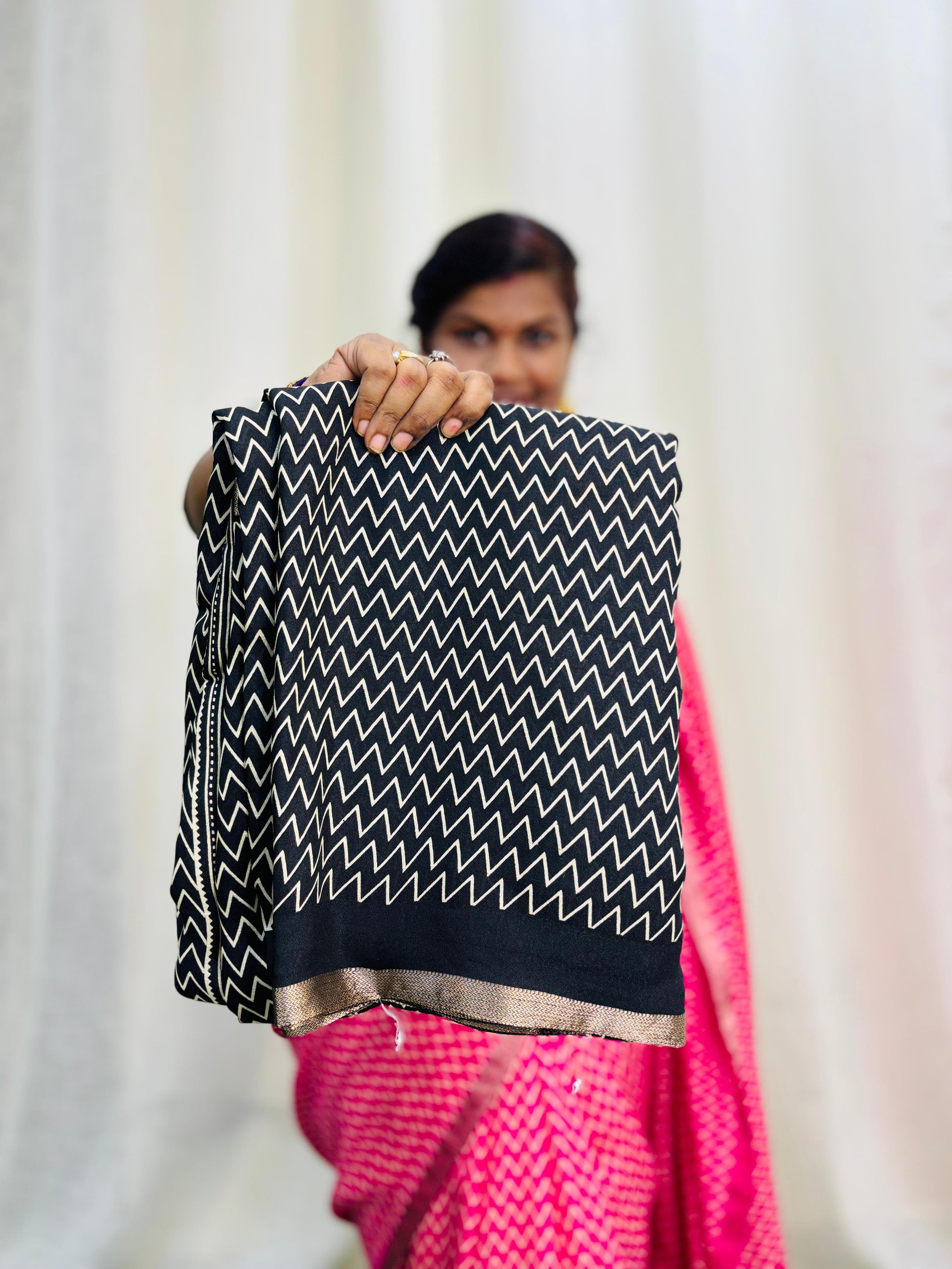 "Upgrade your wardrobe with our Kshatriya pattern Binny Crepe saree. Made with high-quality fabric, this saree is perfect for any occasion. Experience comfort and elegance at an affordable price of 1150."