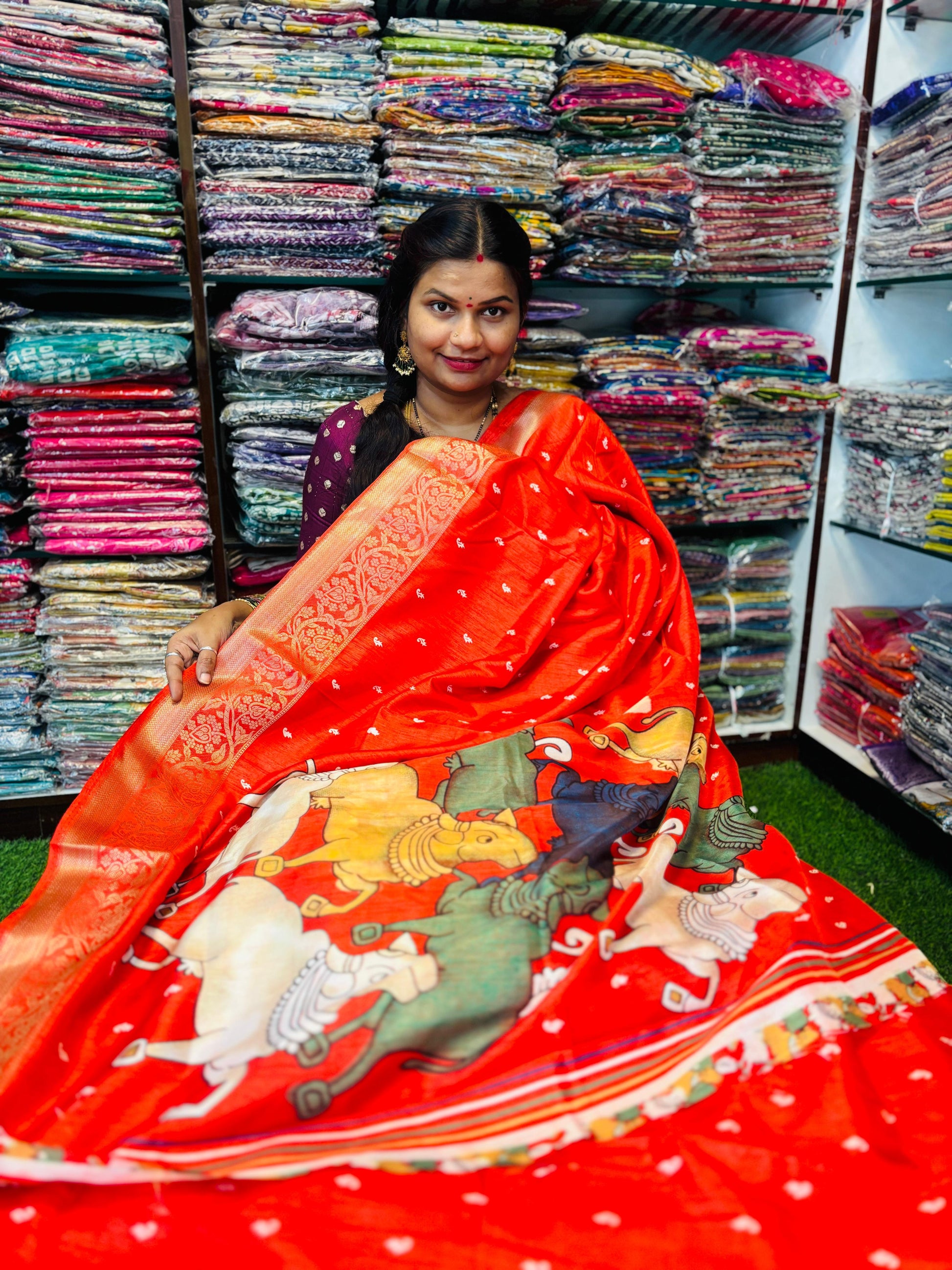 As an industry expert, I recommend this Crepe Silk saree featuring a rich pichwai pallu and Kanchi zari border. Made from premium silk, this elegant saree is perfect for any occasion and adds a touch of sophistication to your wardrobe. With its beautiful print and rich texture, it is sure to make you stand out in style.
