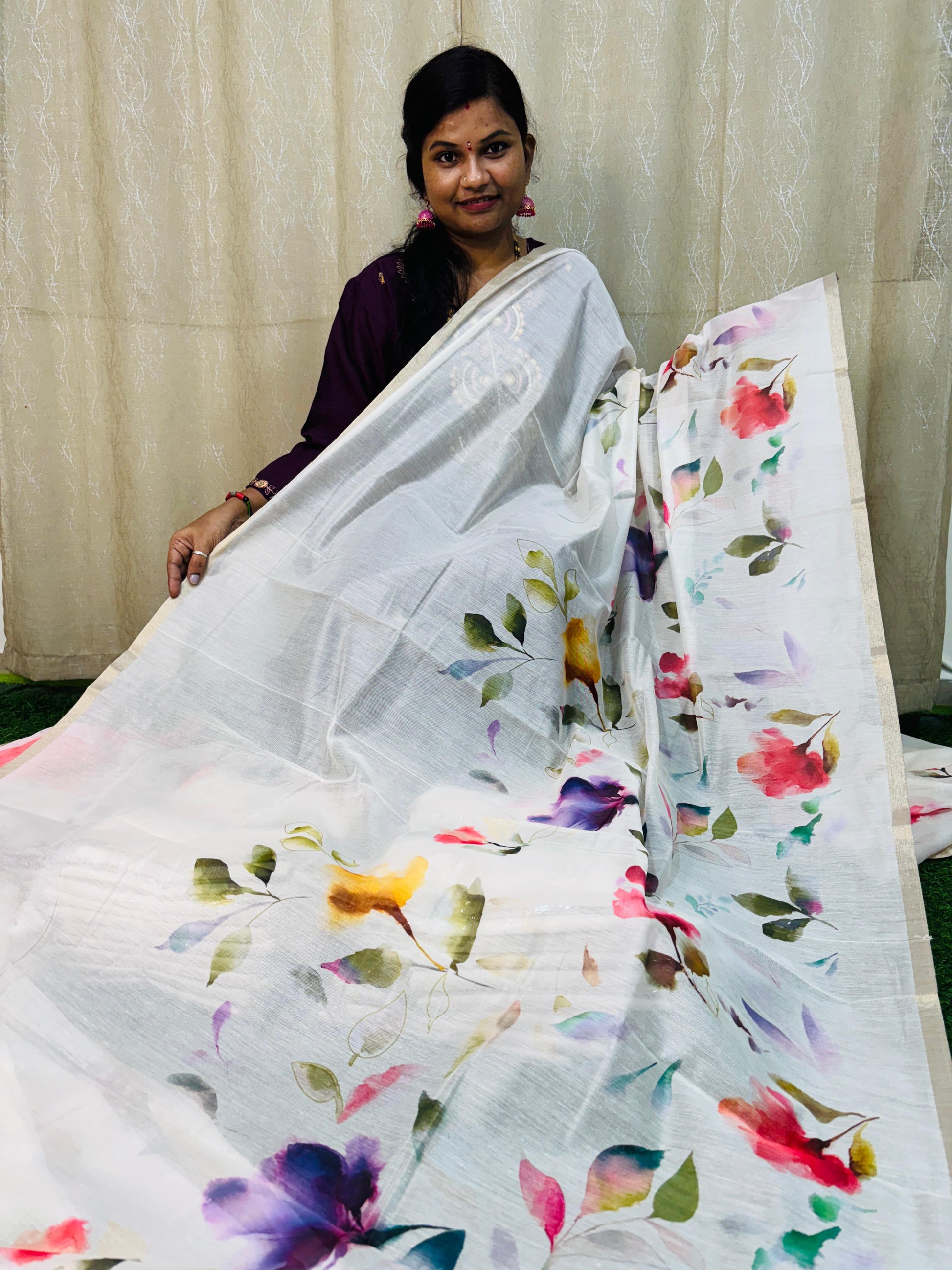 అత్యుత్తమ చందేరి కాటన్ తో తయారు చేయబడిన మా ఫాబ్రిక్ అందమైన డిజిటల్ ఫ్లోరల్ ప్రింట్ కలిగి ఉంది. మృదువైన మరియు గాలి పీల్చుకునేలా, ఇది అతీంద్రియ చక్కదనంతో అద్భుతమైన దుస్తులను సృష్టిస్తుంది. ఏ సందర్భానికైనా పర్ఫెక్ట్. కాంట్రాస్ట్ బ్లౌజ్ తో.