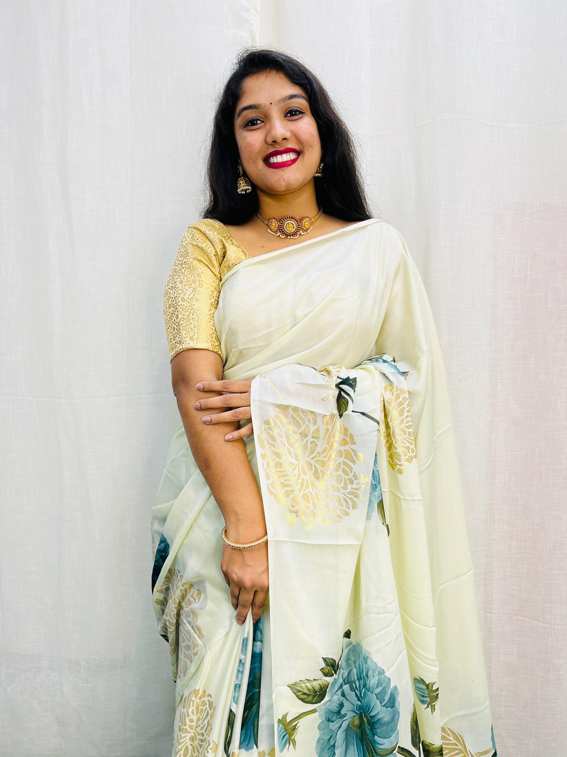 ఫ్లవరల్ డిజిటల్స్తో ముడతలుగల పట్టు చీరలు