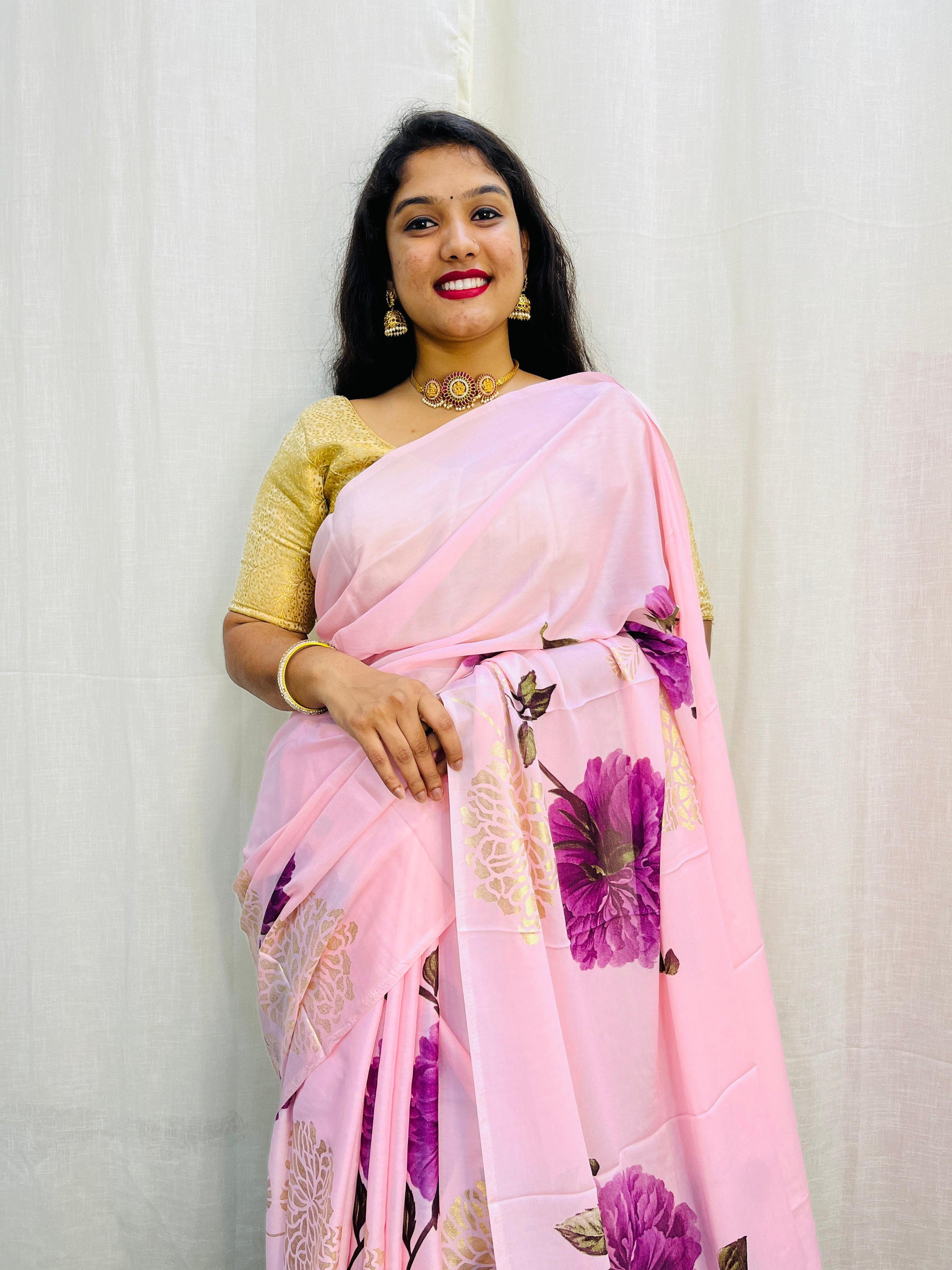 ఫ్లవరల్ డిజిటల్స్తో ముడతలుగల పట్టు చీరలు