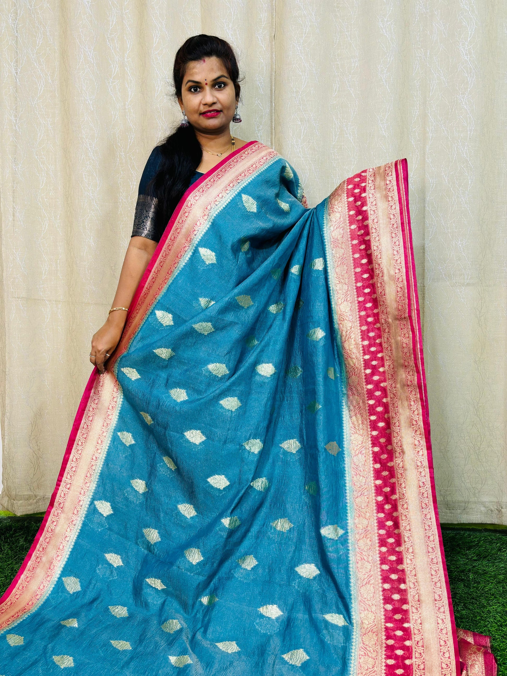 ఈ చూర్ణం చేయబడిన కణజాలం అద్భుతమైన కంచి గద్వాల్ అల్లికలను కలిగి ఉంది, సంక్లిష్టమైన అల్లిక బట్టీలను ప్రదర్శిస్తుంది. ఈ ఒక రకమైన ఉత్పత్తితో సాంప్రదాయ హస్తకళ మరియు విలాసవంతమైన డిజైన్ ప్రయోజనాలను ఆస్వాదించండి. మీ శైలిని ఎలివేట్ చేయండి మరియు ఏదైనా దుస్తులకు చక్కదనం జోడించండి.