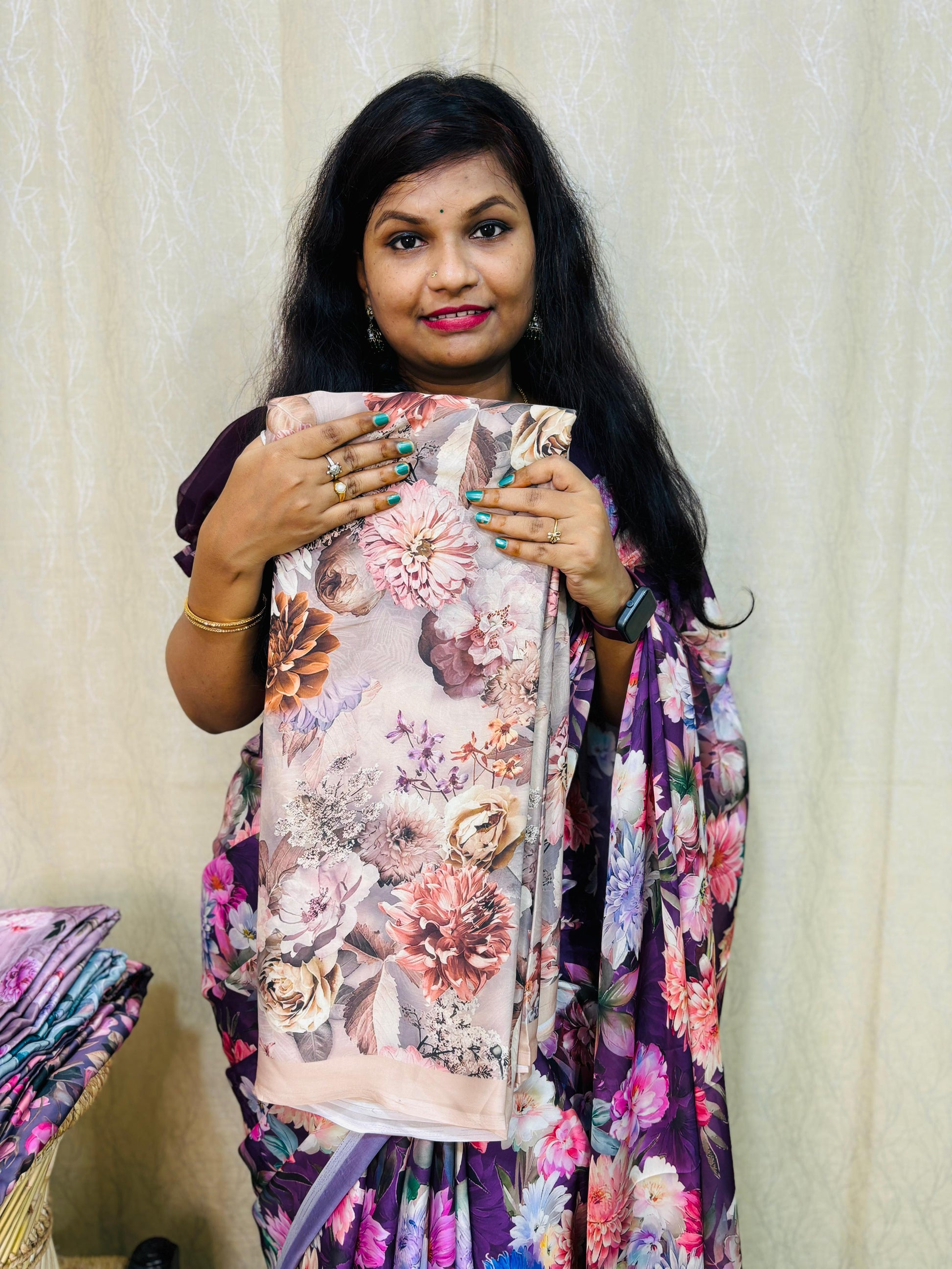 శాటిన్ సరిహద్దులతో మా డిజిటల్ శాటిన్ చిఫ్ఫోన్లను పరిచయం చేస్తున్నాము - లగ్జరీ మరియు సౌకర్యాల యొక్క ఖచ్చితమైన కలయిక. లైట్ వెయిట్ మెటీరియల్స్తో తయారు చేయబడిన, మా చిఫ్ఫోన్లు ప్రవహించడమే కాకుండా చక్కదనాన్ని అందిస్తాయి. ఈ బహుముఖ మరియు స్టైలిష్ ఫ్యాబ్రిక్లతో మీ వార్డ్రోబ్ను అప్గ్రేడ్ చేయండి.