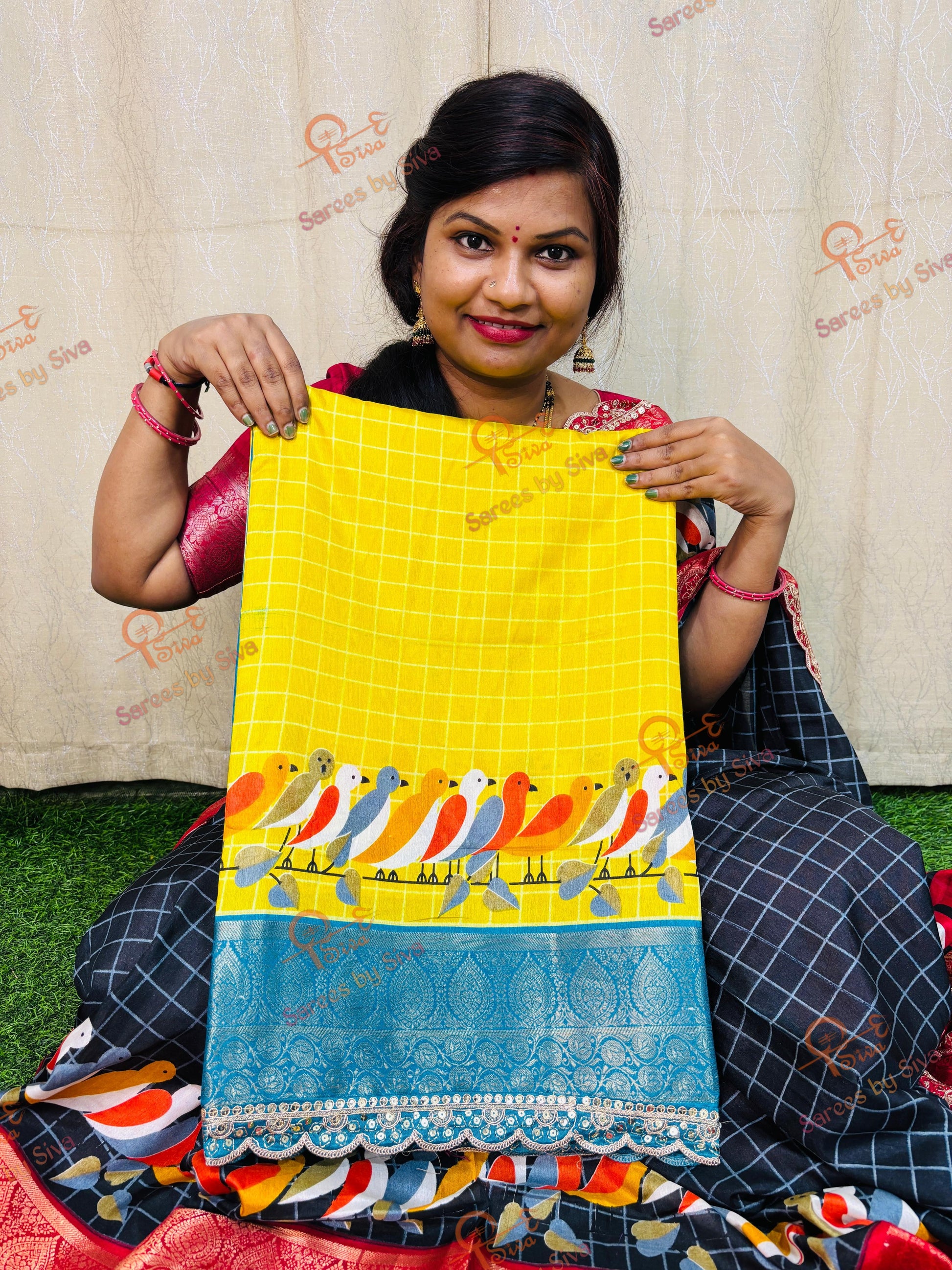 విలక్షణమైన పారట్స్ డిజైన్తో నైపుణ్యంగా రూపొందించబడిన ఈ బ్లౌజ్, క్లిష్టమైన డోలా కాంచి నేతను హైలైట్ చేసే అద్భుతమైన కాంట్రాస్ట్ను కలిగి ఉంది. సున్నితమైన స్కాలోప్ బార్డర్లు ఏ సందర్భానికైనా ప్రత్యేకమైన మరియు స్టైలిష్ ముక్కను సృష్టిస్తాయి. ఖచ్చితత్వం మరియు వివరాలకు శ్రద్ధతో తయారు చేయబడిన ఈ బ్లౌజ్, ఫ్యాషన్పై ఆసక్తి ఉన్న ఏ వ్యక్తికైనా తప్పనిసరిగా ఉండాలి.