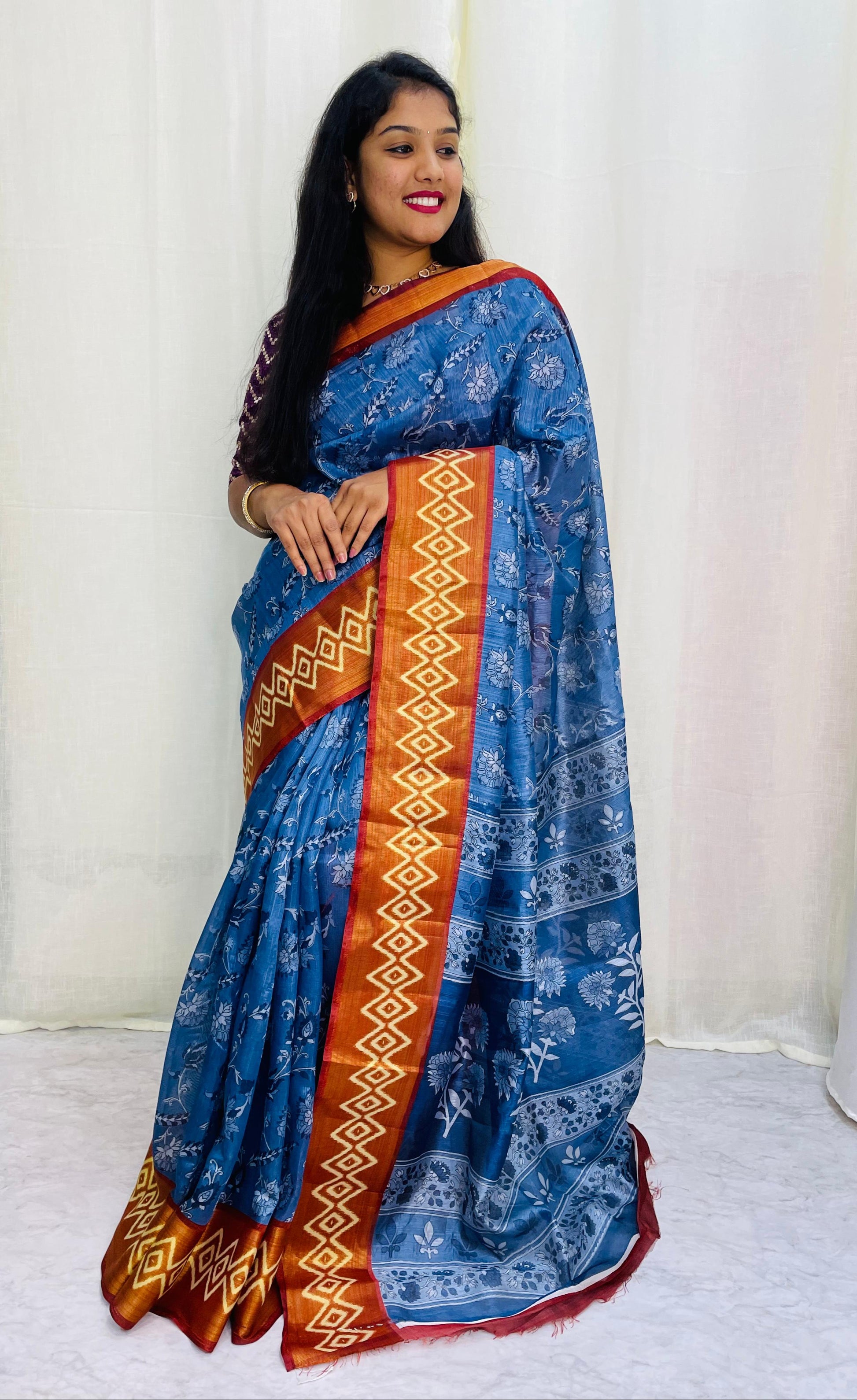 ఇక్కత్ సరిహద్దులతో హైలైట్ చేయబడింది