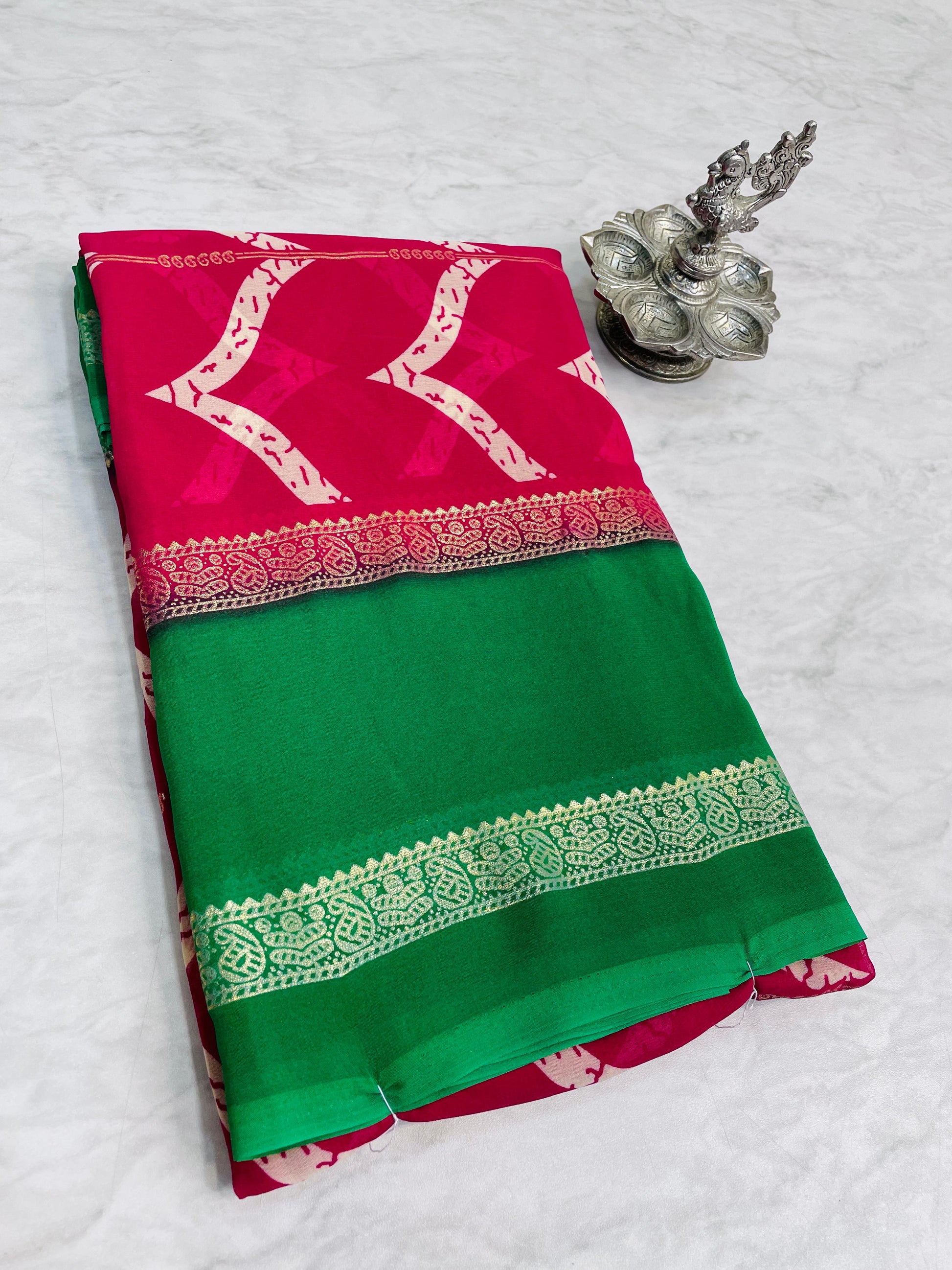 అందమైన జార్జెట్ నేత ప్రింట్ చీర