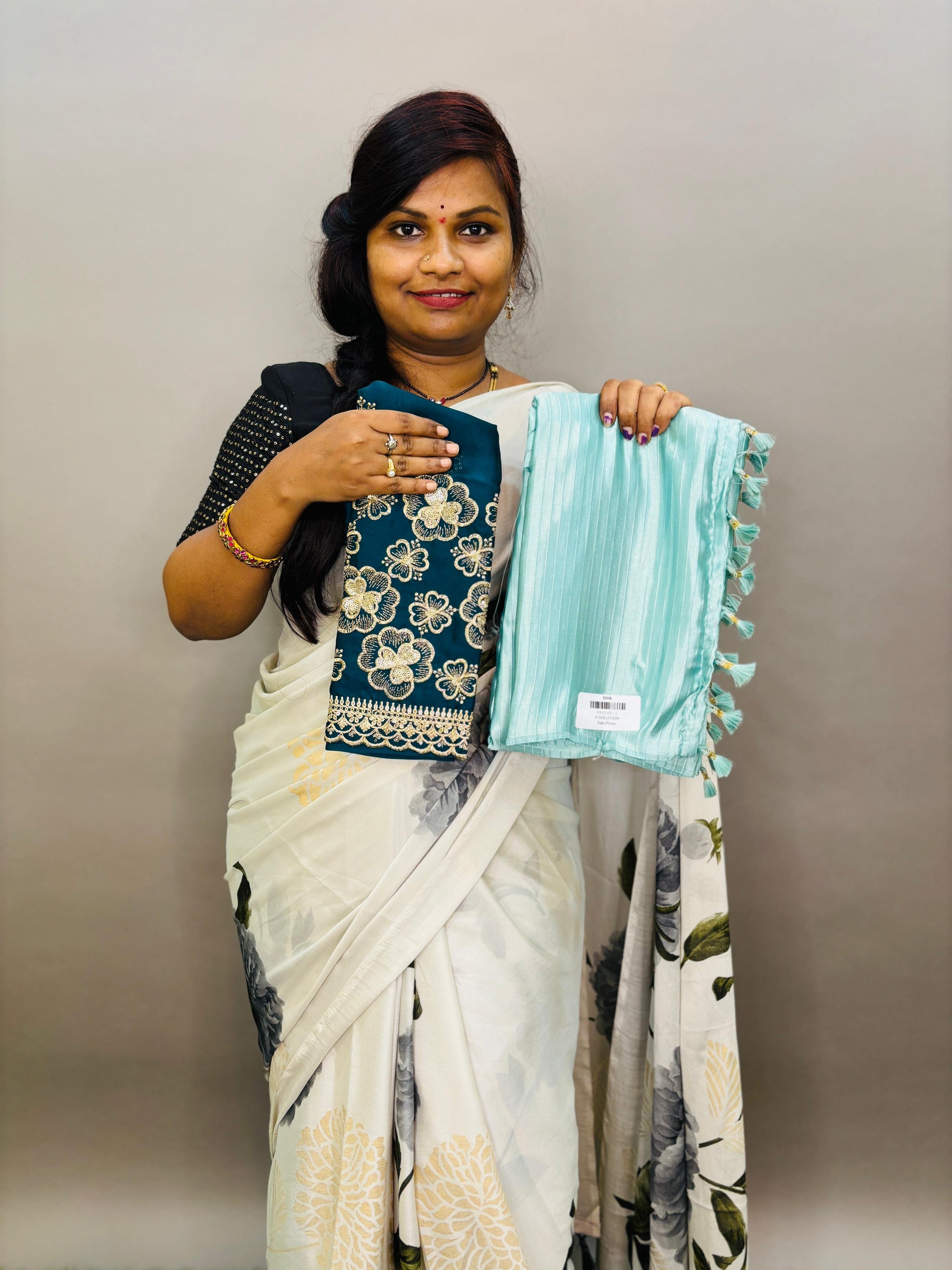 Discover the luxurious feel of Japan Satin Silk, a premium fabric known for its softness and shine. Paired with a designer blouse, this material offers both elegance and comfort, making it perfect for any occasion. Experience the best of Japanese quality with our Japan Satin Silk.