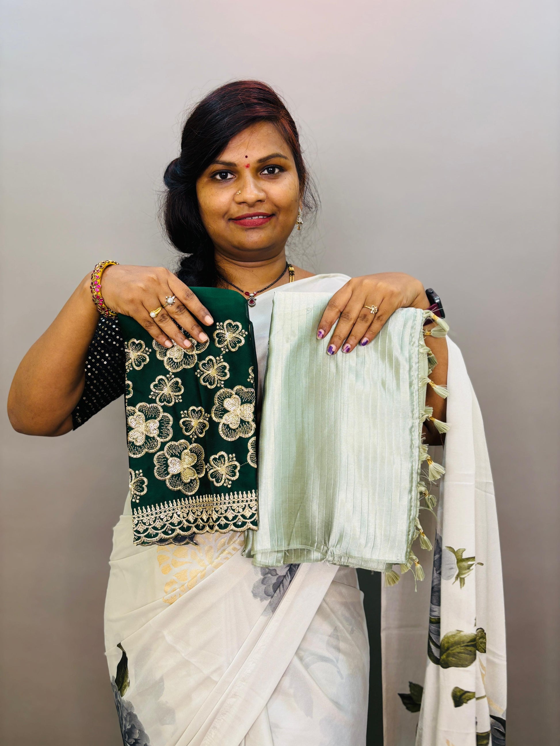 Discover the luxurious feel of Japan Satin Silk, a premium fabric known for its softness and shine. Paired with a designer blouse, this material offers both elegance and comfort, making it perfect for any occasion. Experience the best of Japanese quality with our Japan Satin Silk.
